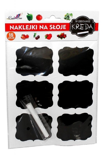 Набор из 18 наклеек, идеально подходящих для маркировки банок. Дополнительно в набор входит мел. Наклейки можно многократно подписывать благодаря смываемому мелу. Размеры наклеек: 7 x 4 см.