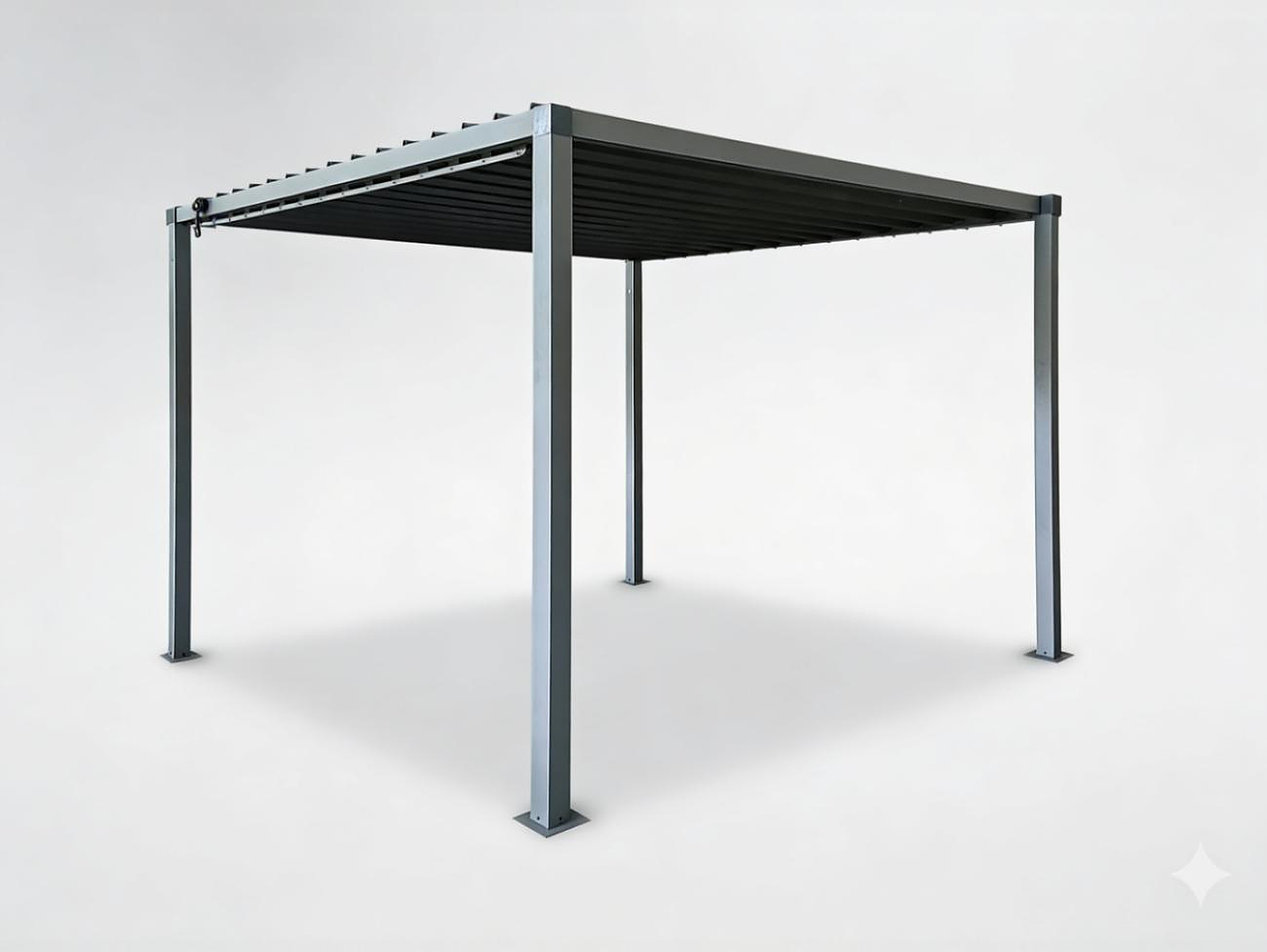 Благодаря стальной конструкции и оцинкованной крыше пергола обеспечивает эффективную защиту от солнца, дождя и переменчивых погодных условий, сохраняя при этом минималистичный, элегантный вид.