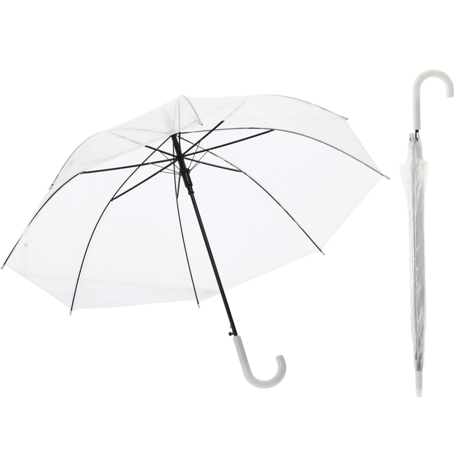 Зонт с автоматическим открыванием8 спицметаллическая рамапластиковая длинная ручкапрозрачный материалдиаметр 99 см.