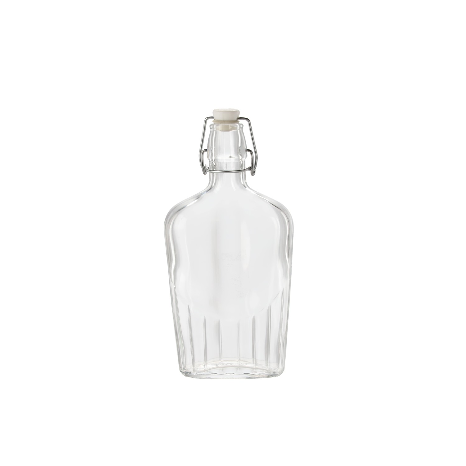 Стеклянная бутылка FIASCHETTA 500 МЛ с МЕХАНИЧЕСКОЙ ПРОБКОЙ, изготовлена из толстого стекла. Идеально подходит для настоек, соков и т. д.