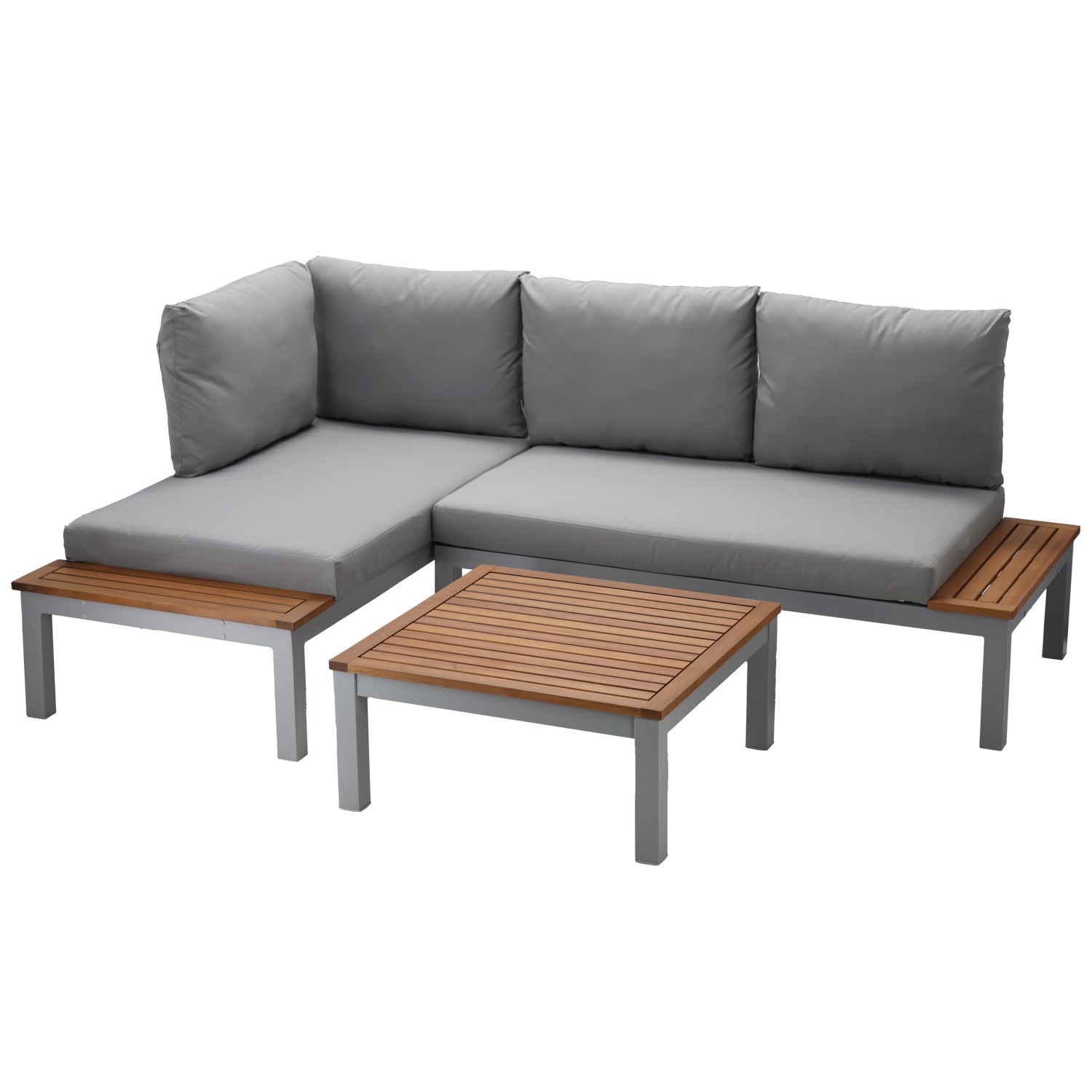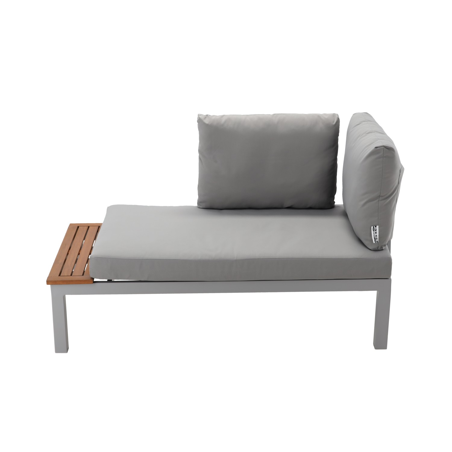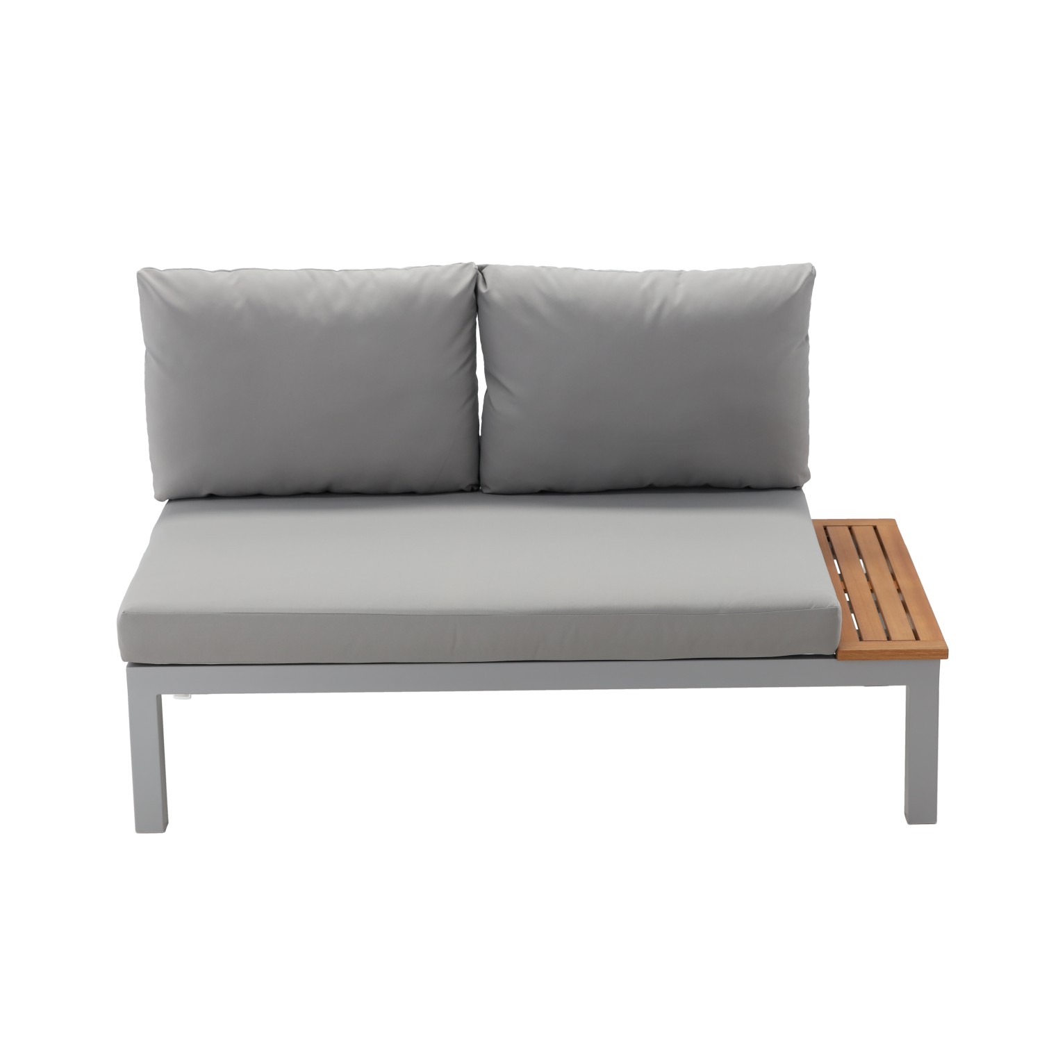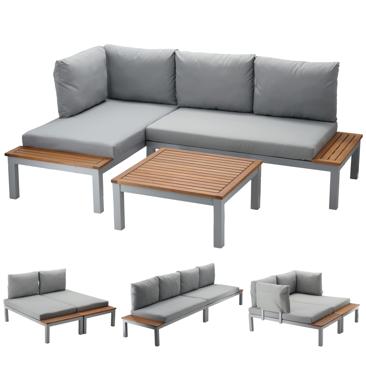 Набор модульной мебели представляет собой современное и функциональное решение для зоны отдыха. В комплект входят два модульных дивана и журнальный столик. Конструкция мебели основана на прочном алюминиевом каркасе, а деревянные элементы изготовлены из прочного эвкалипта. Ключевой особенностью комплекта является его модульность – деревянные элементы дивана (столешницы) и спинки подушек можно свободно переставлять, что позволяет создавать различные комбинации, адаптированные к индивидуальным потребностям и пространству. Благодаря этому комплект обеспечивает гибкость и комфорт использования как во время отдыха, так и во время дружеских встреч.- размеры дивана: 76,5 x 138 x 73 см- Размеры столика: 71,5 x 71,5 x 32,5 см- каркас: алюминий- деревянные элементы: эвкалиптовое дерево