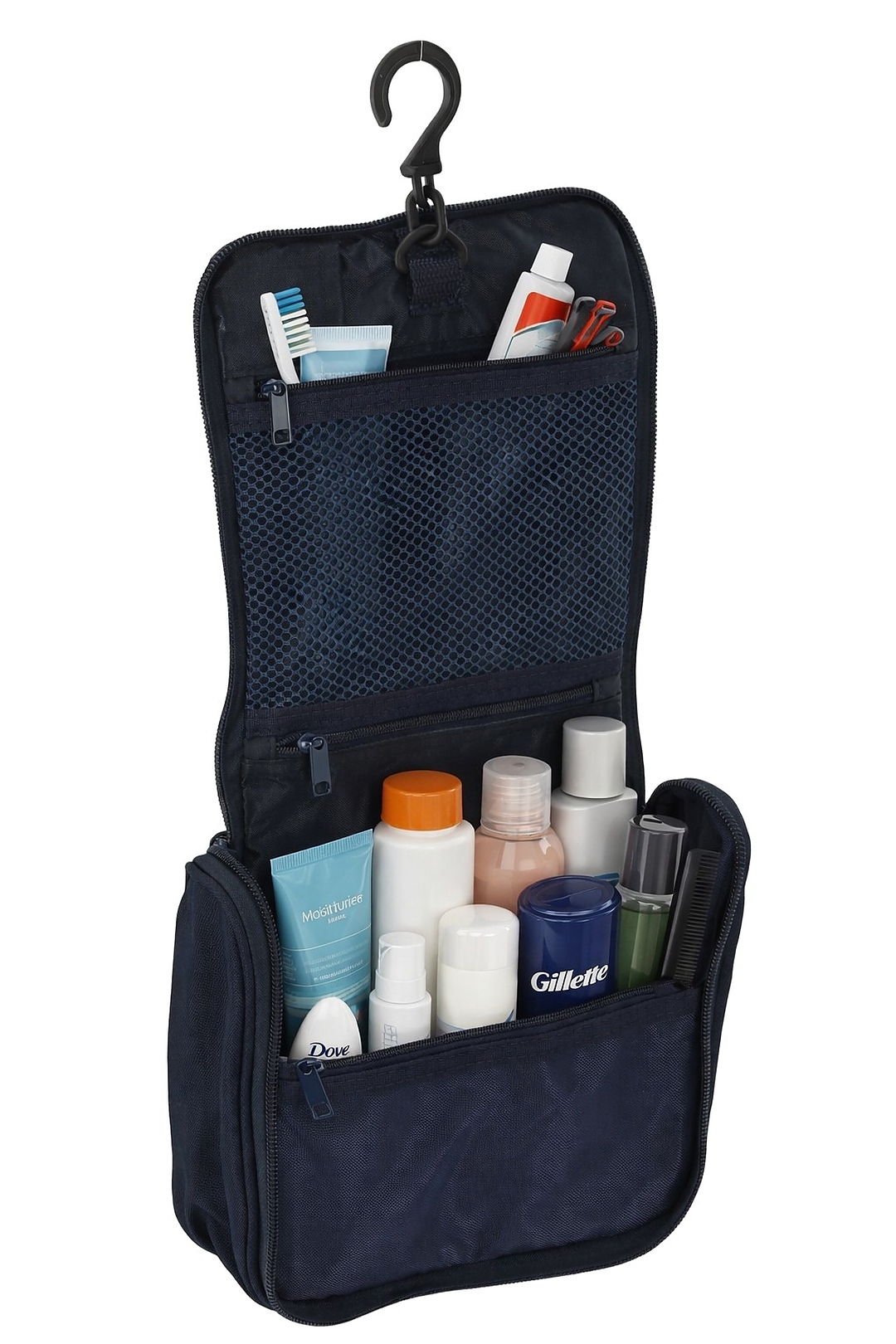 Водонепроницаемая дорожная косметичка размером 16 × 19 × 6 см, оснащенная удобным крючком для подвешивания. Практичная и компактная, идеально подходит для хранения косметики и аксессуаров во время путешествий.