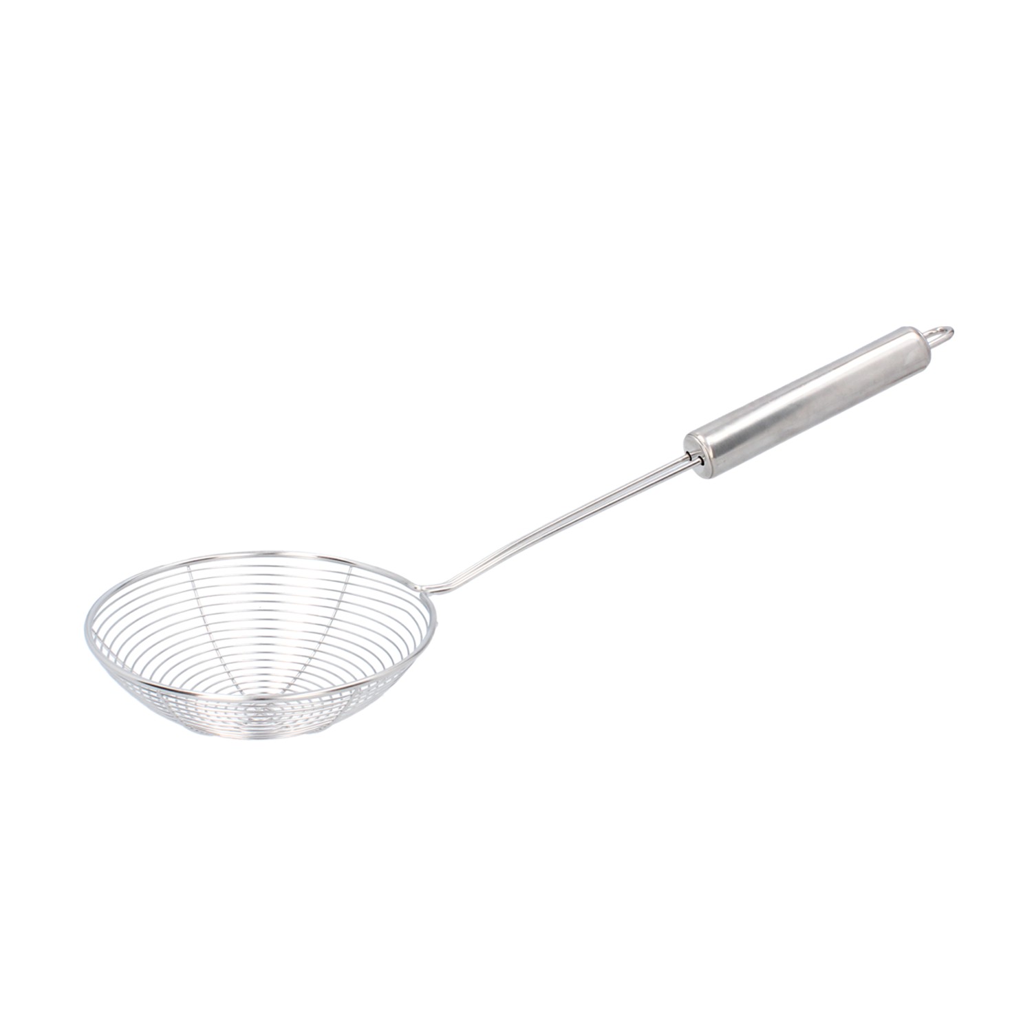 Металлическое сито с ручкой диаметром 13,5 см. Легкое и прочное. Позволяет быстро процедить нужные продукты.Сито также имеет небольшое отверстие в передней части, что позволяет подвесить его в кухне, экономя место.