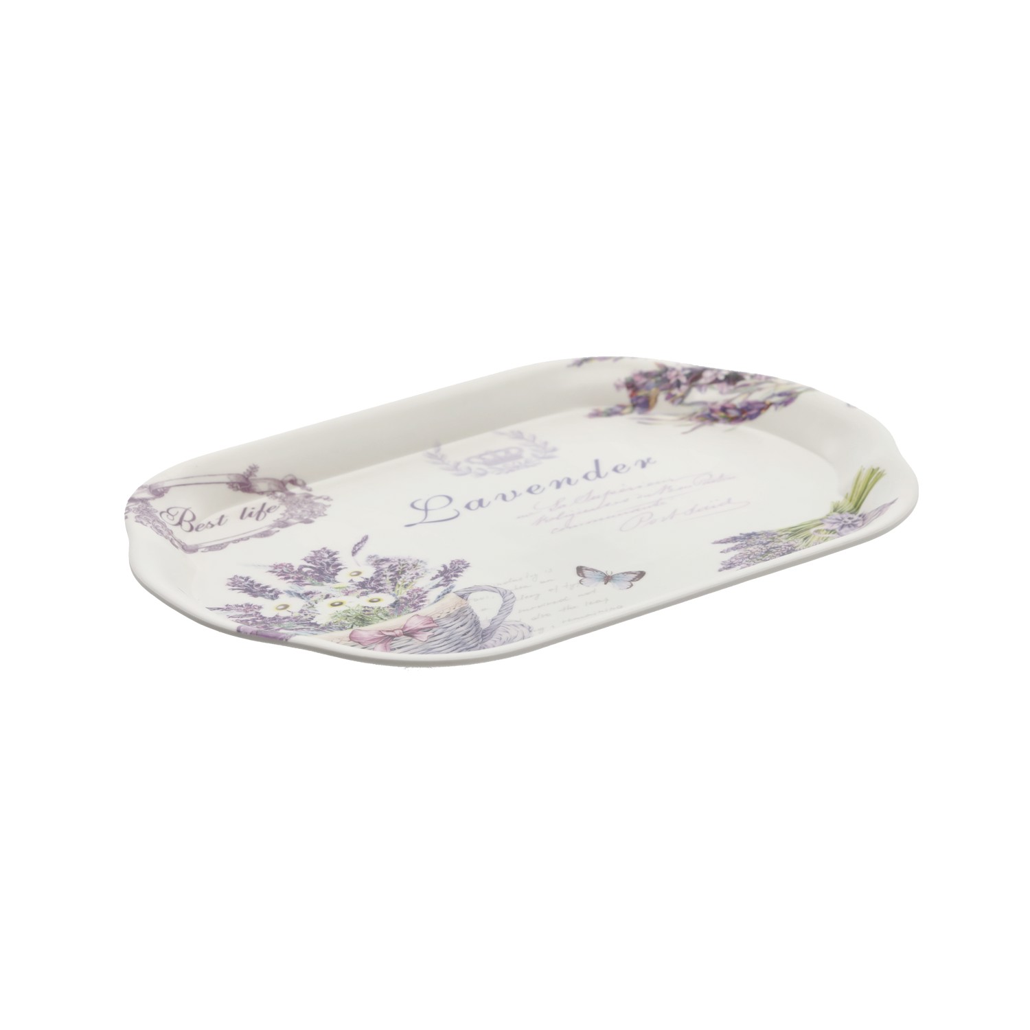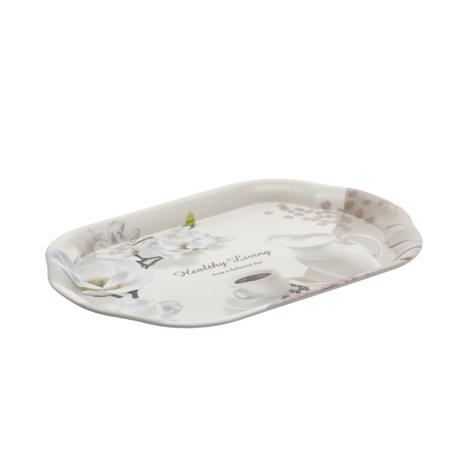 Практичный поднос из пластика. Идеально подходит для переноски посуды. Имеет элегантный цветочный узор.