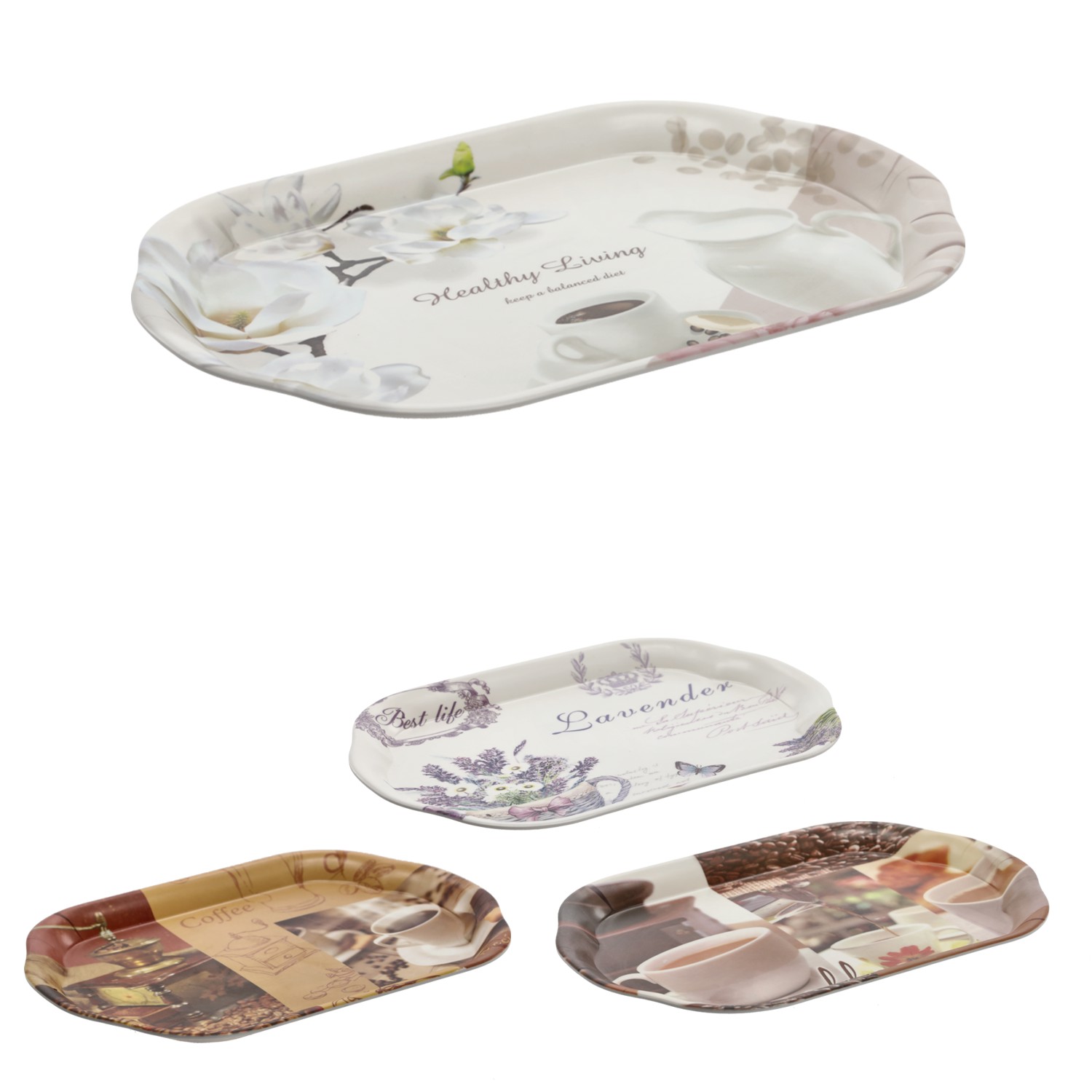 Практичный поднос из прочного пластика. Оригинальная форма и красочный дизайн делают поднос украшением сам по себе. Идеально подходит для домашнего использования и полезен в профессиональной гастрономии. Доступны два дизайна. Мы отправляем случайный дизайн.
