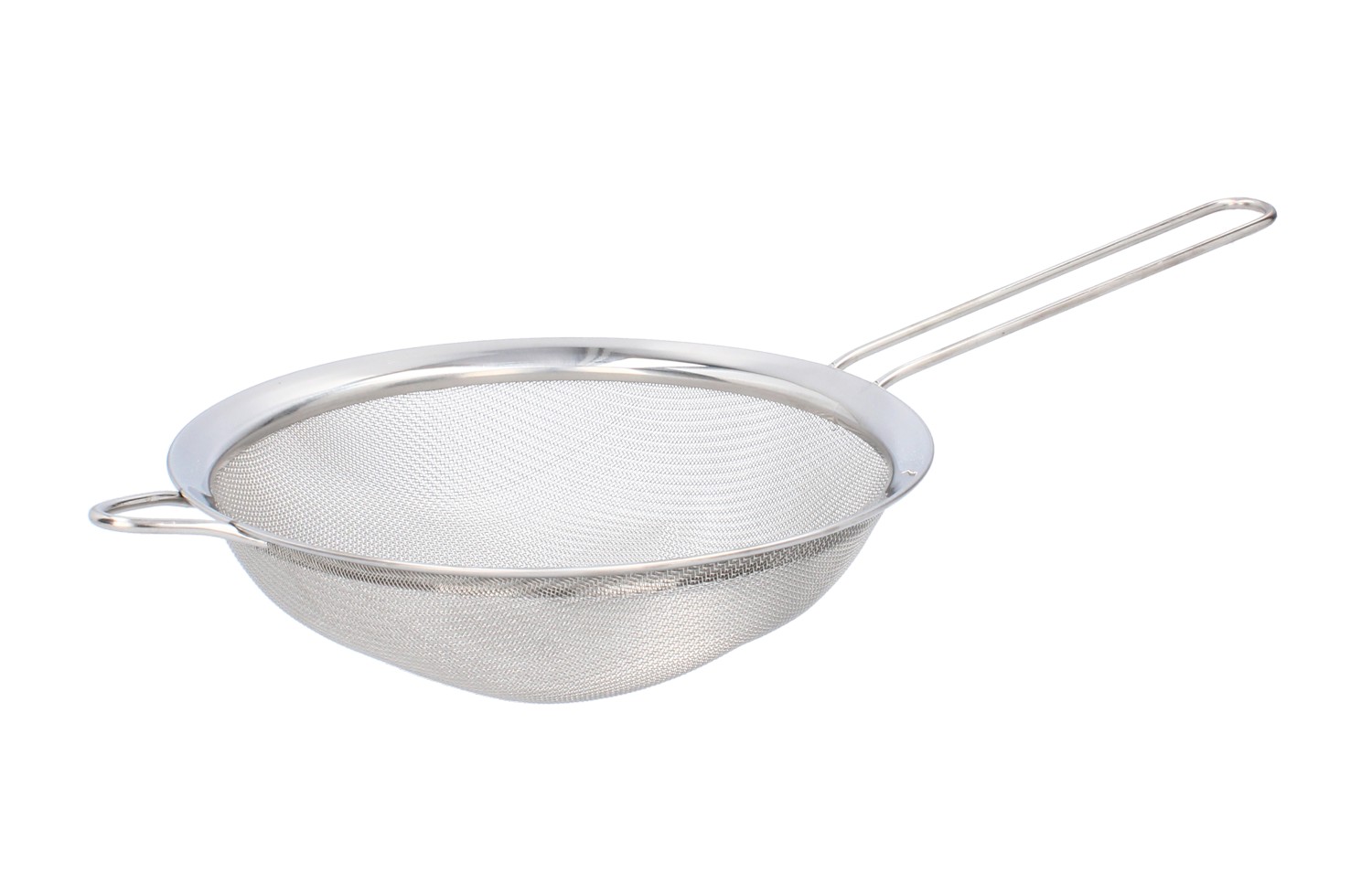 Металлическое сито с ручкой диаметром 19,5 см. Легкое и прочное. Позволяет процеживать нужные продукты. Идеально профилированная ручка обеспечивает комфорт использования. Сито также имеет отверстие, которое позволяет повесить его на кухне, что позволяет сэкономить место. Вес: 146 г.