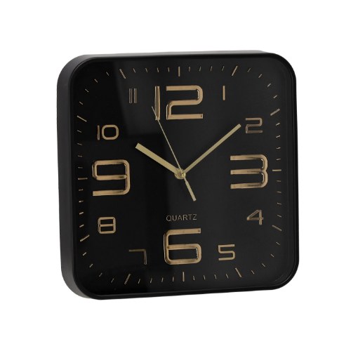 Современные квадратные настенные часы с черным циферблатом и золотыми арабскими цифрами. Идеально подходят для придания элегантности и выразительности любому интерьеру.