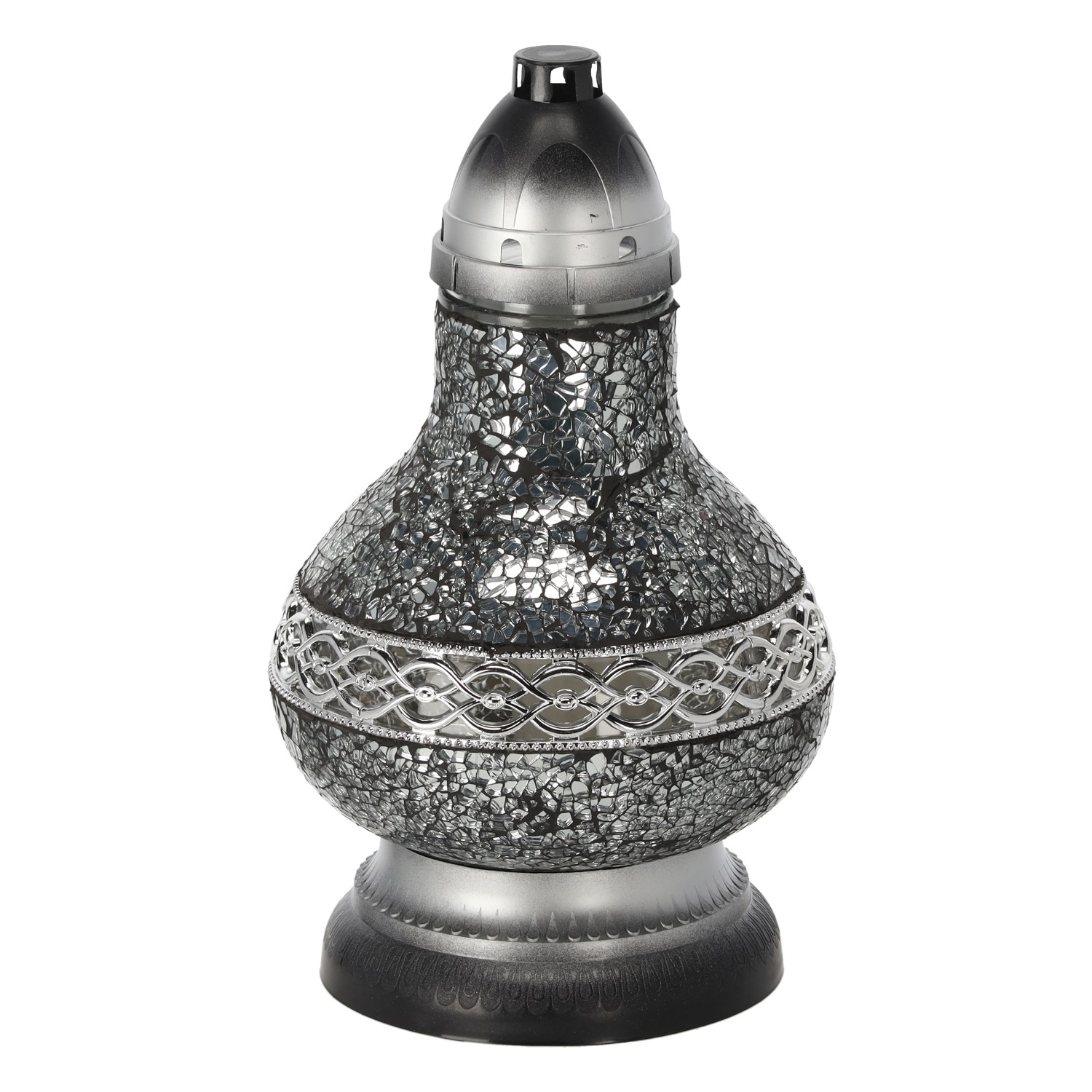 Светильник с витражом в модели Карафа Малая в серебристом цвете. Элегантный и прочный, идеально подходит для украшения надгробий, сочетая в себе классику и высокое качество изготовления.