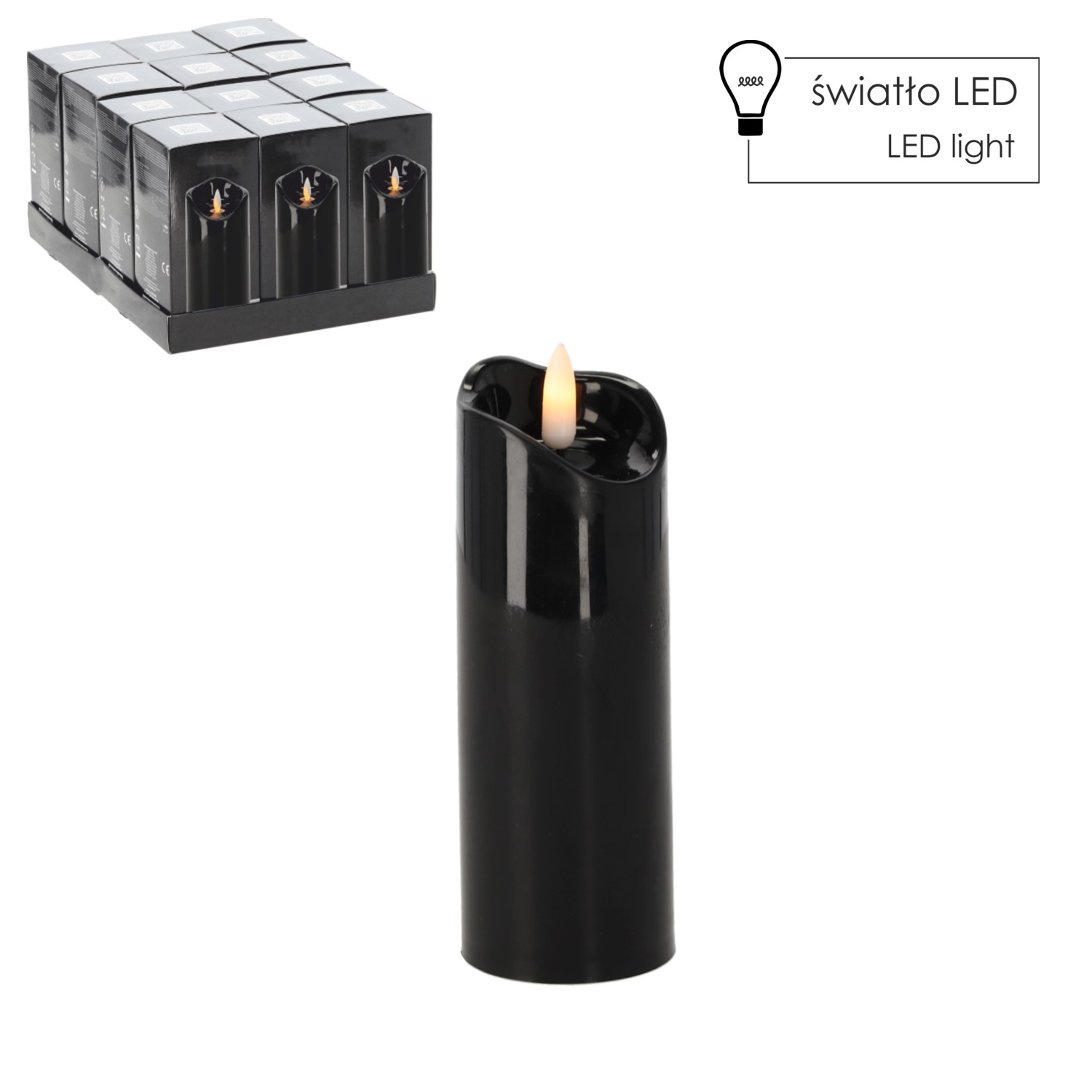 Свеча LED размером 5 x 15 см, черного цвета. Безопасная и не требующая обслуживания, идеально подходит для украшения надгробий и интерьеров.