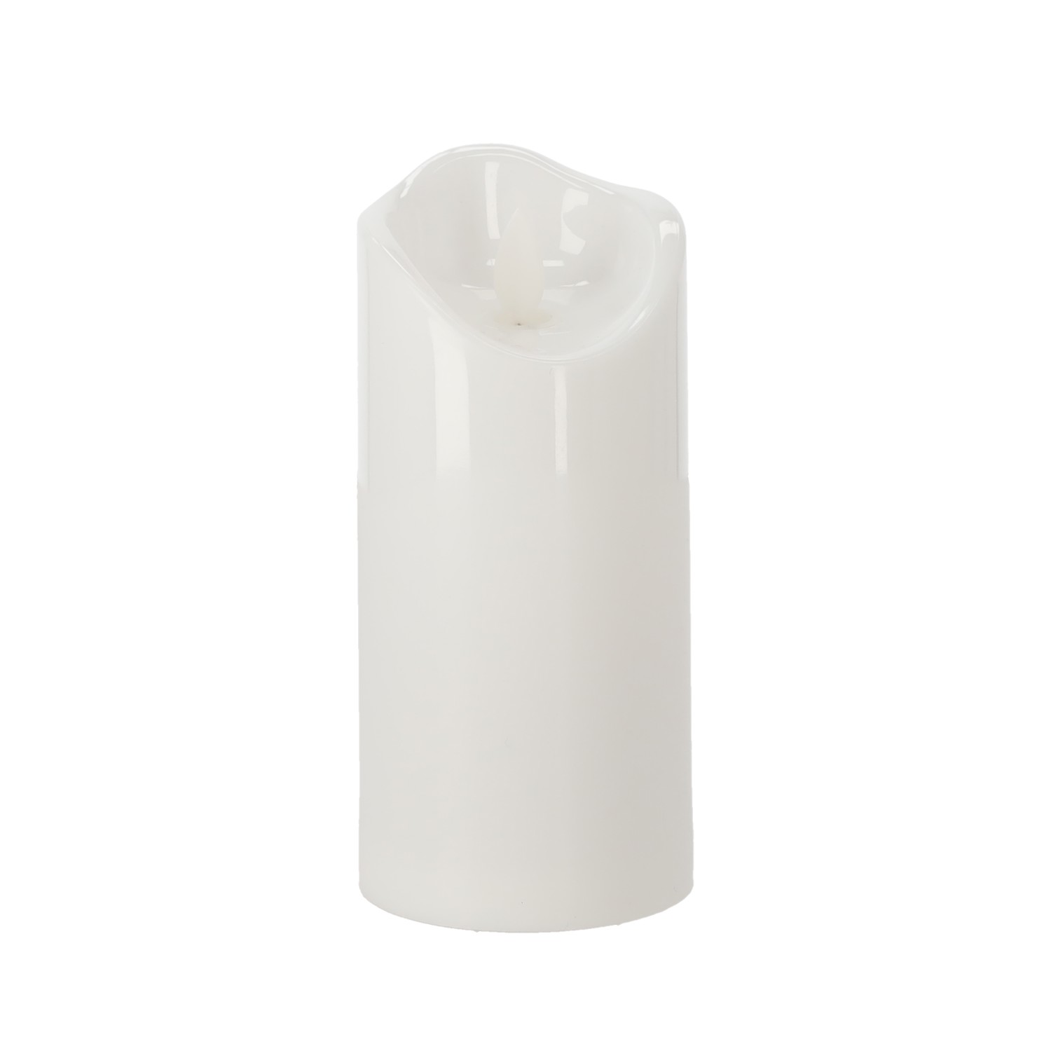 Свеча LED размером 7 x 15 см белого цвета, оснащенная подвижным пламенем, имитирующим естественный свет свечи. Безопасная и не требующая обслуживания, идеально подходит для украшения надгробий и интерьеров.