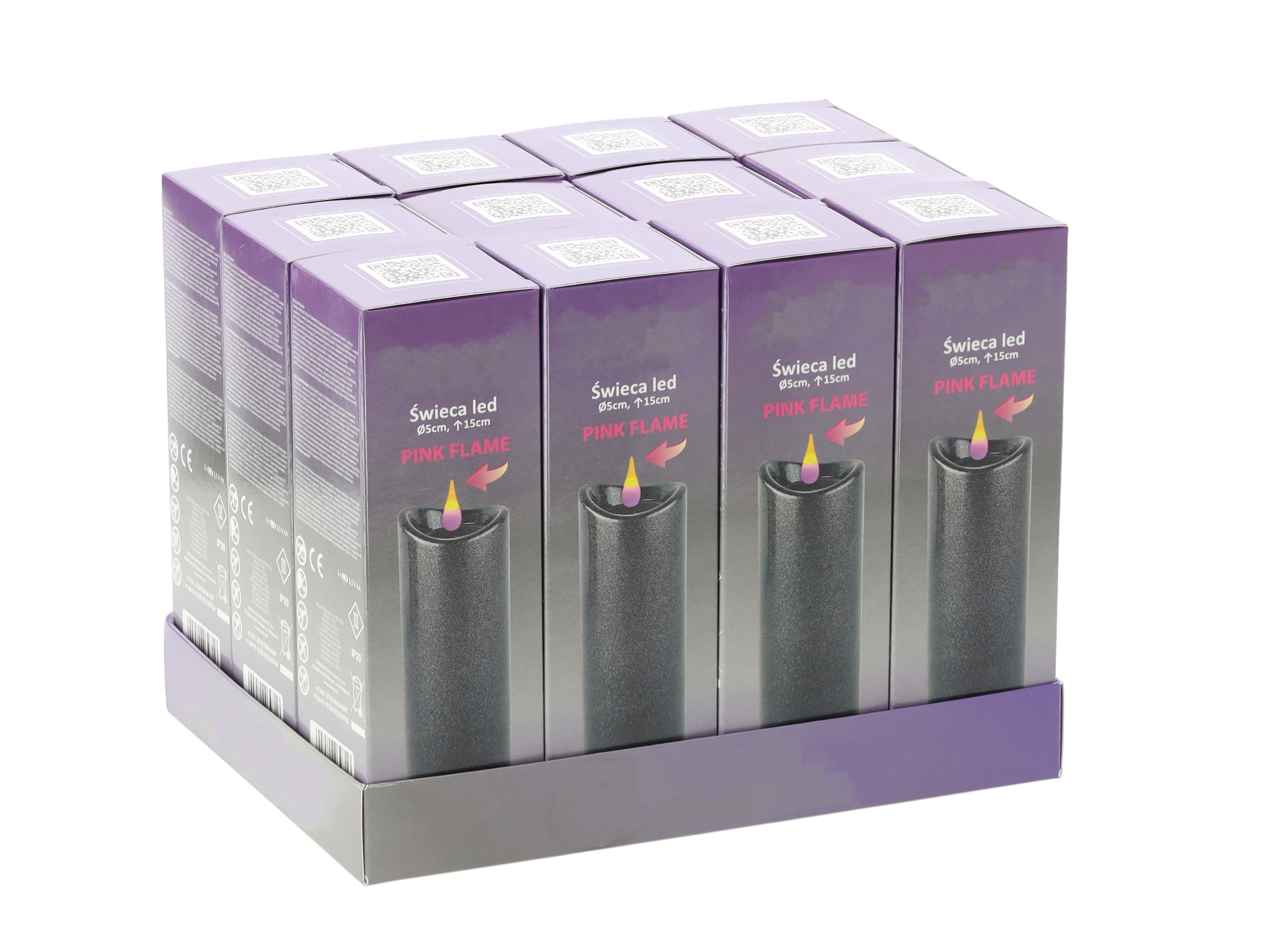 Свеча LED размером 5 x 15 см гранитного цвета, излучающая розовое пламя. Питается от батареек, которые обеспечивают длительное и безопасное освещение. Идеально подходит для украшения надгробий и интерьеров.