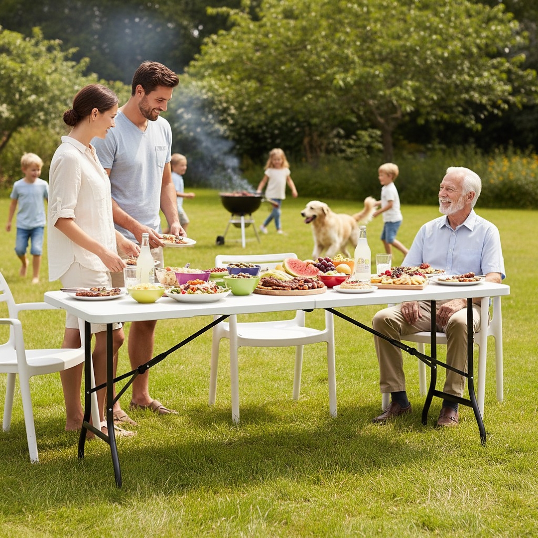 Вы ищете практичный и универсальный стол для любого случая? Этот складной туристический/кейтеринговый стол станет незаменимым помощником на садовых вечеринках, свадьбах на открытом воздухе, кемпингах и коммерческих мероприятиях. Благодаря прочной конструкции и большой полезной площади он с комфортом вмещает 6-8 человек. 👨👩👧👦