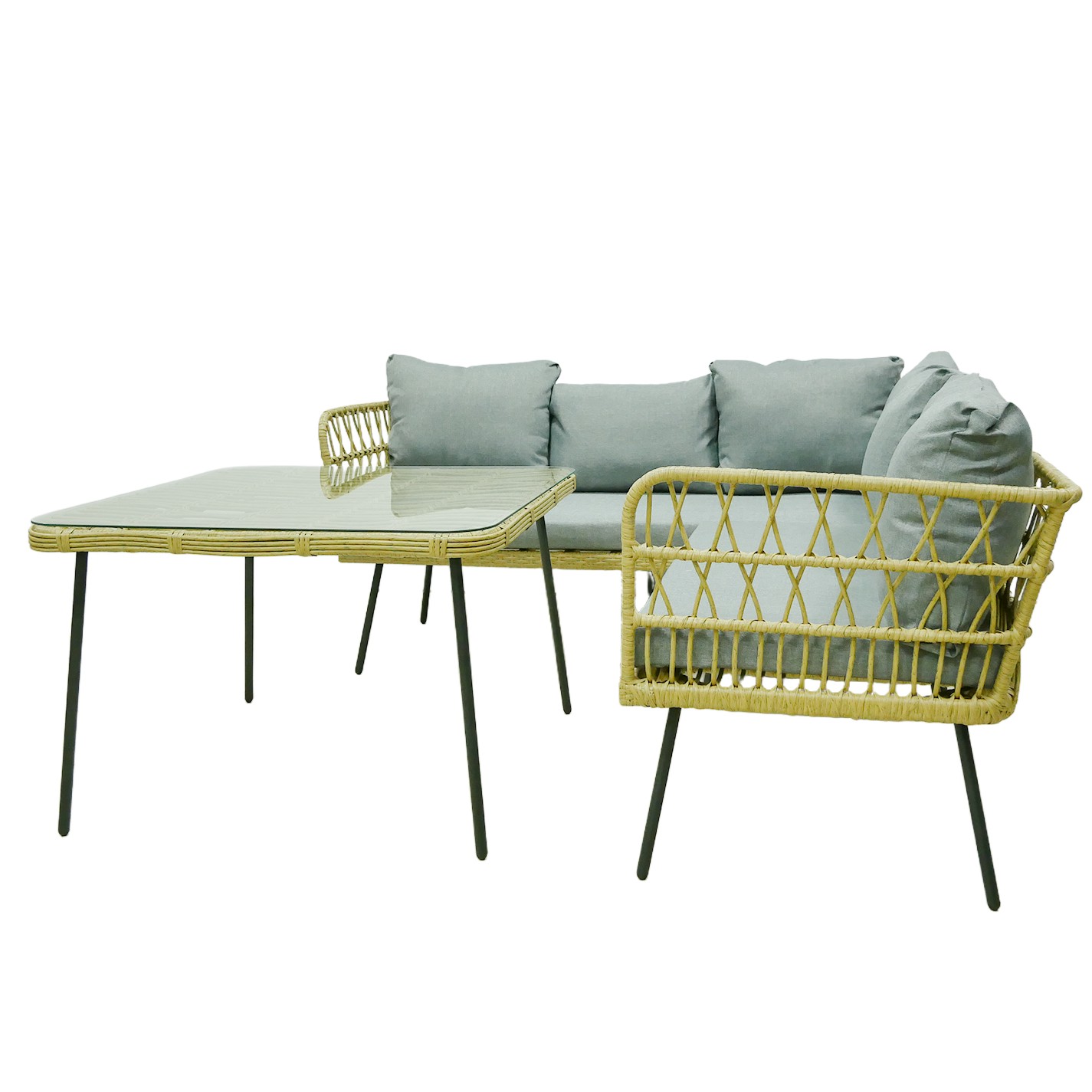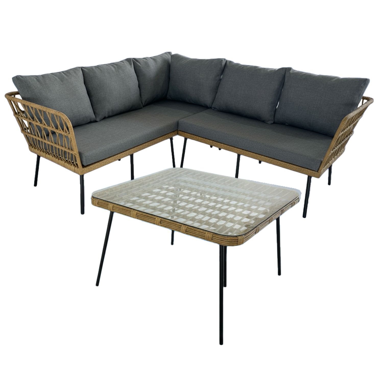 Создайте стильную и функциональную зону отдыха на свежем воздухе с помощью элегантного набора садовой мебели. Этот современный угловой диван теплого коричневого оттенка прекрасно впишется как в садовый интерьер, так и на террасу или большой балкон.