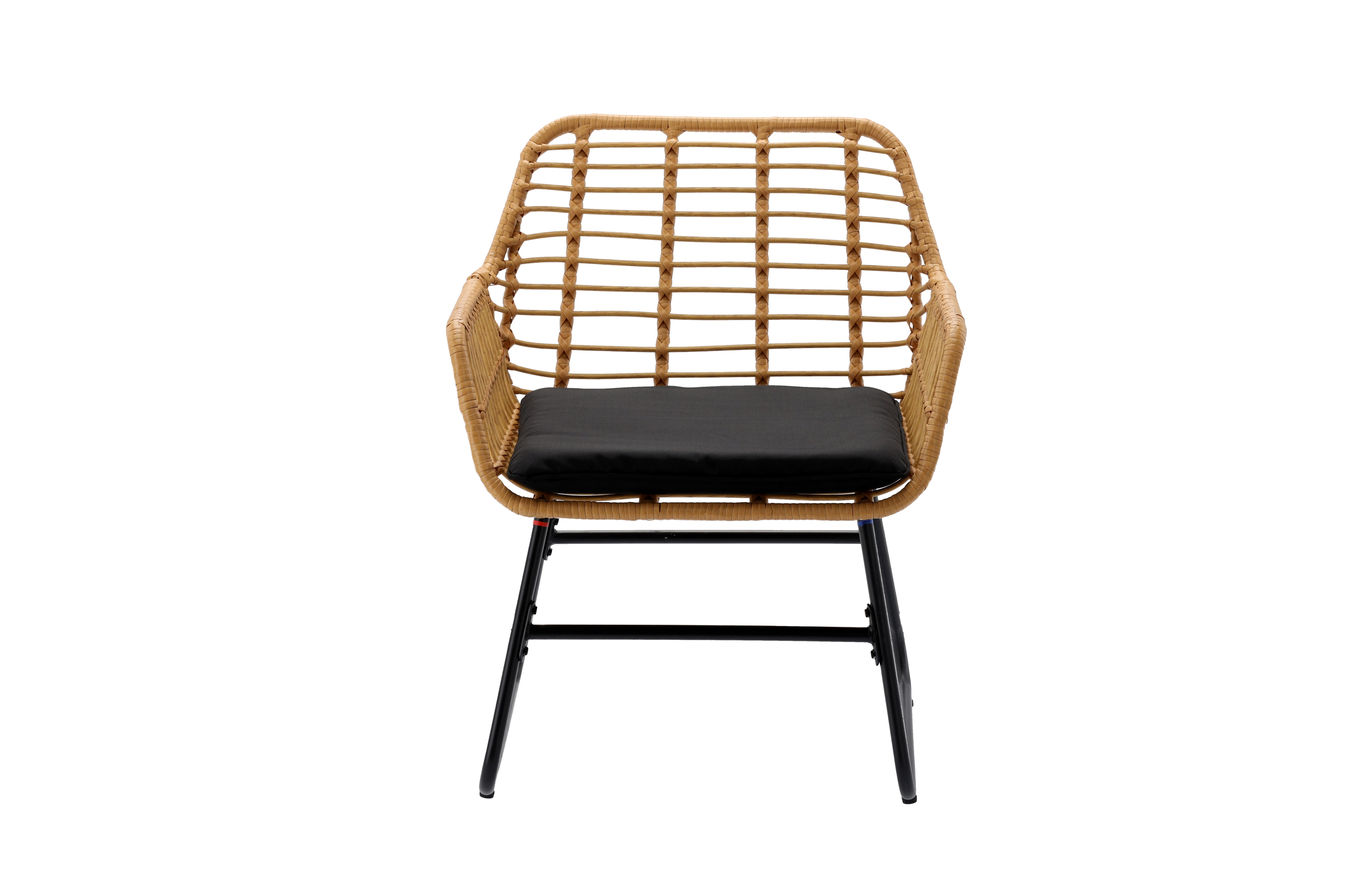 Мебель изготовлена из высококачественного ротанга — материала, устойчивого к переменчивым погодным условиям. Несмотря на небольшой вес, она чрезвычайно устойчива, что гарантирует длительный срок службы. Ротанговое плетение — это прочный и износостойкий материал, идеально подходящий для производства садовой мебели.