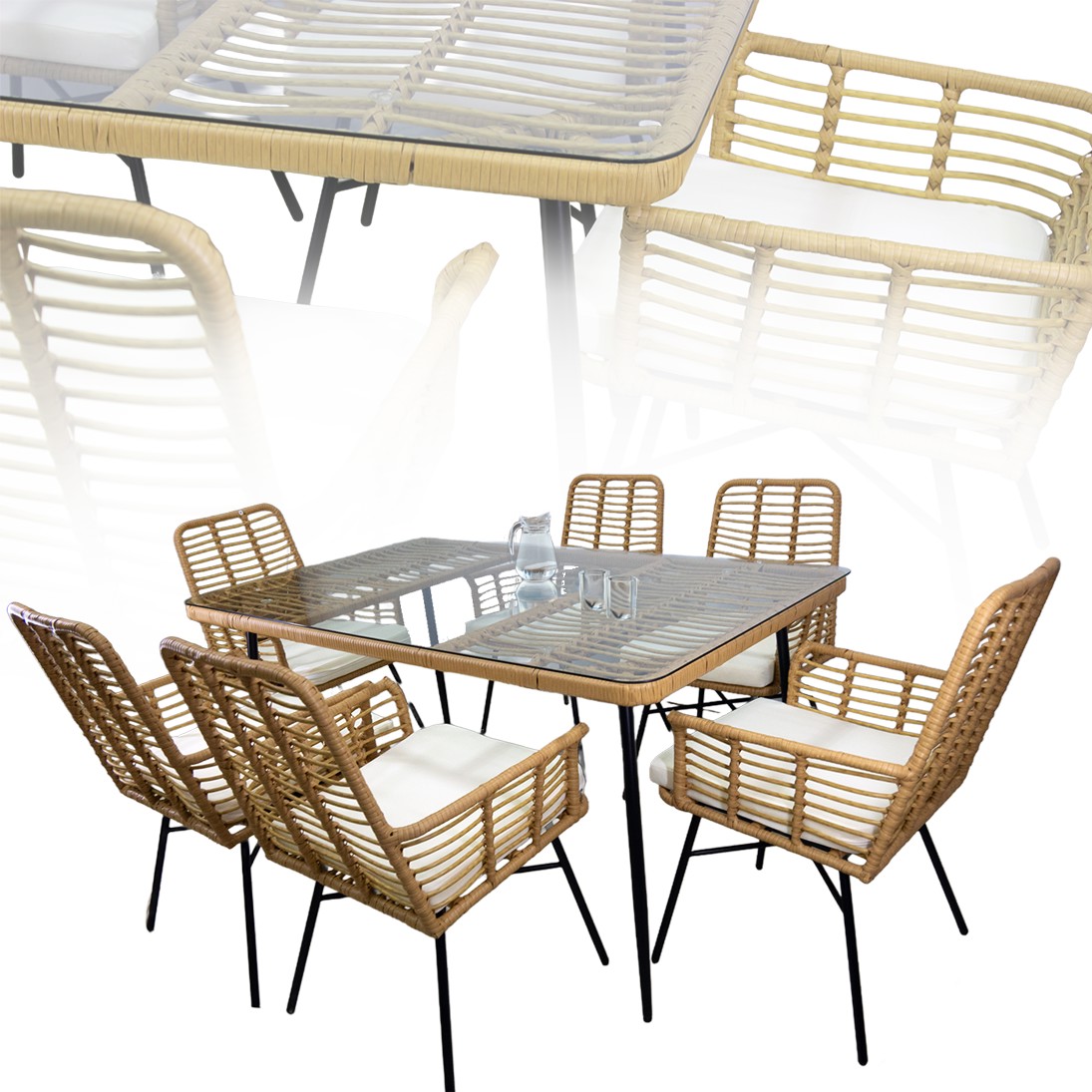 Обеспечьте комфорт и стиль в своем внешнем пространстве с помощью элегантного набора садовой мебели Garden Line ABI7466. Этот практичный комплект, состоящий из большого стола и 6 удобных стульев с подушками, является отличным выбором для сада, террасы, беседки или патио.