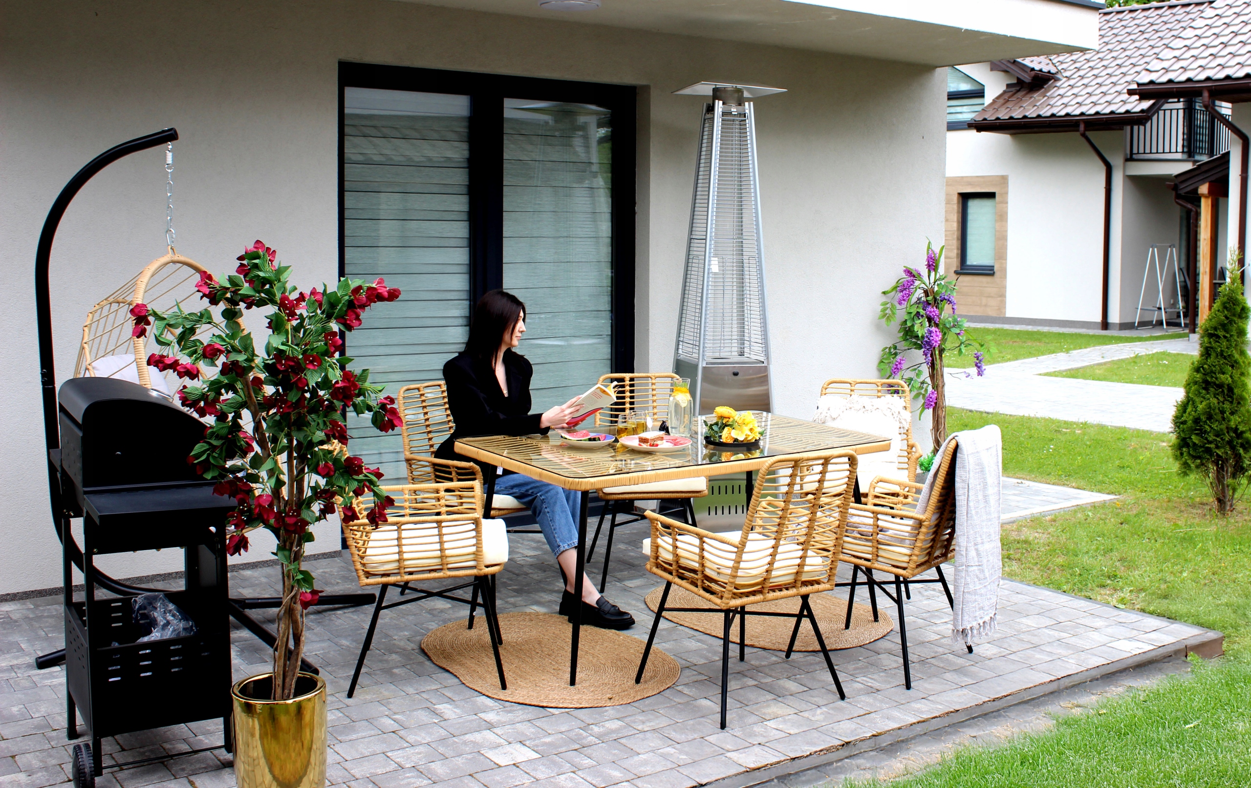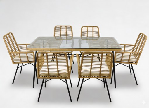 Включает в себя большой прямоугольный столи 6 удобных стульев с подушками. Идеальный выбор для сада, террасы, патио или большого балкона – отлично подходит для семейных обедов, встреч с друзьями и отдыха на свежем воздухе.