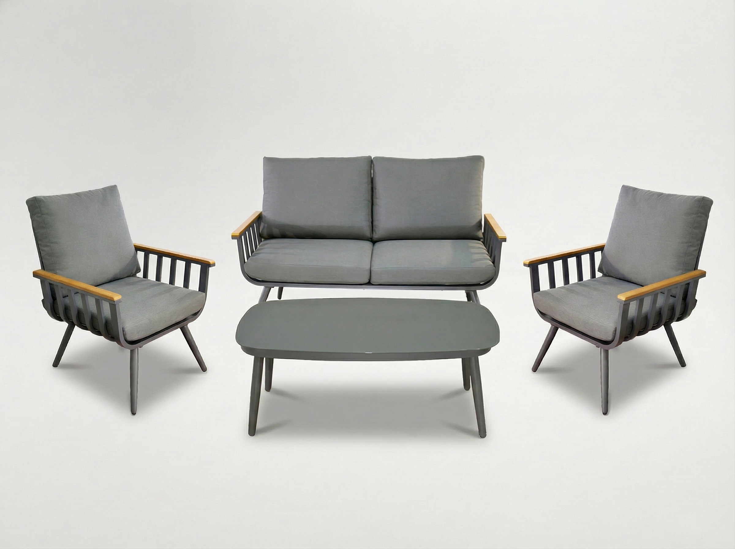 Современный и прочный комплект садовой мебели из алюминия, который не требует больших затрат на обслуживание. Алюминиевая мебель не ржавеет и не требует окраски, а ее регулярная чистка позволяет сохранить эстетичный вид на протяжении многих лет. Комплект устойчив к погодным условиям, благодаря чему он отлично подойдет для сада, террасы или балкона.