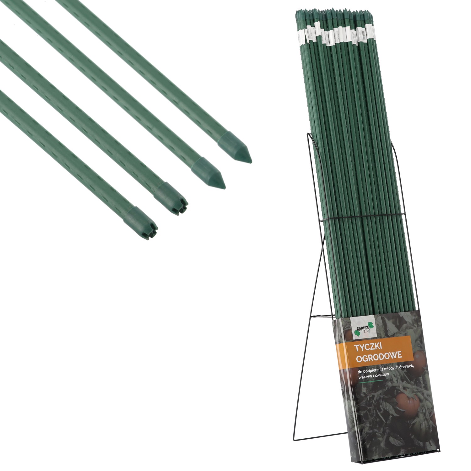 Покрытые прутья облегчают выращивание как низких, так и высоких наземных растений, овощей, кустарников или деревьев в домашнем саду. Заостренный конец облегчает закрепление опоры в земле, а небольшие выступы по всей длине предотвращают ее выпадение.