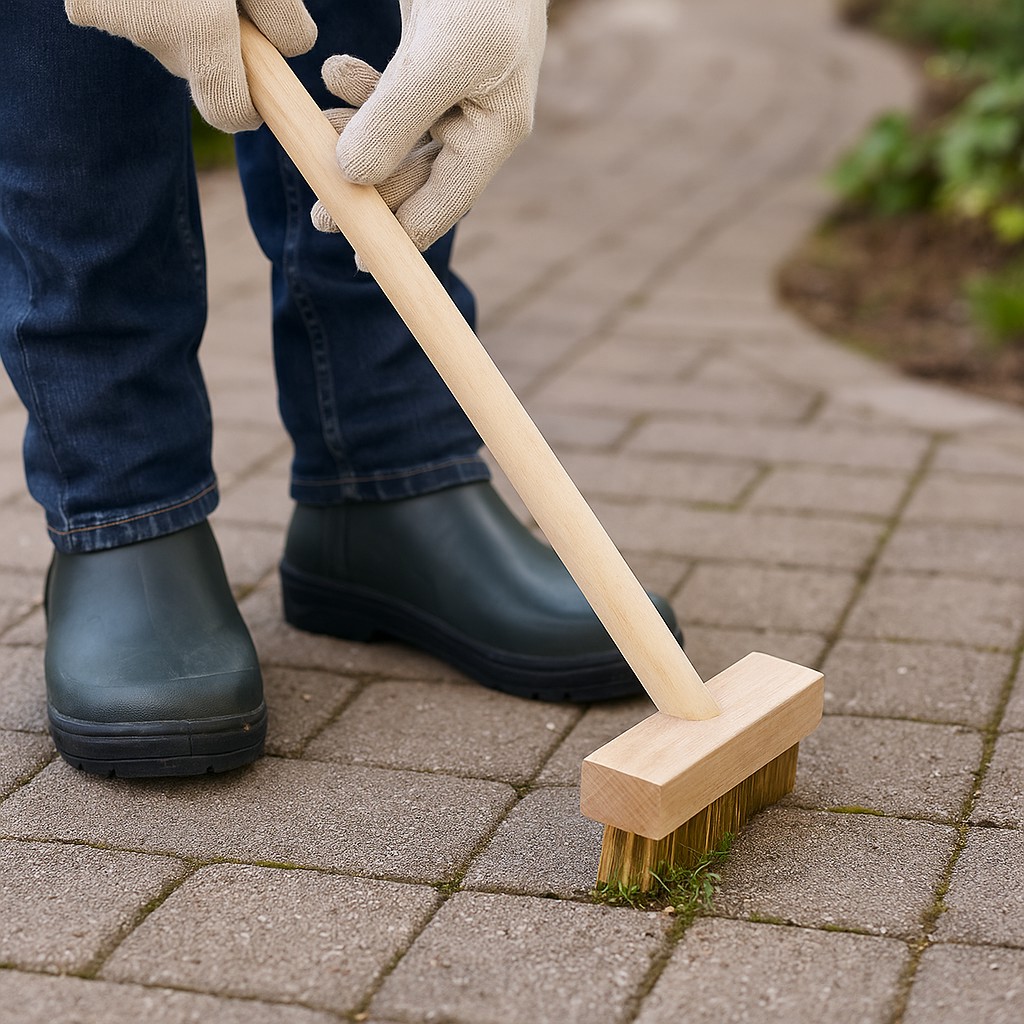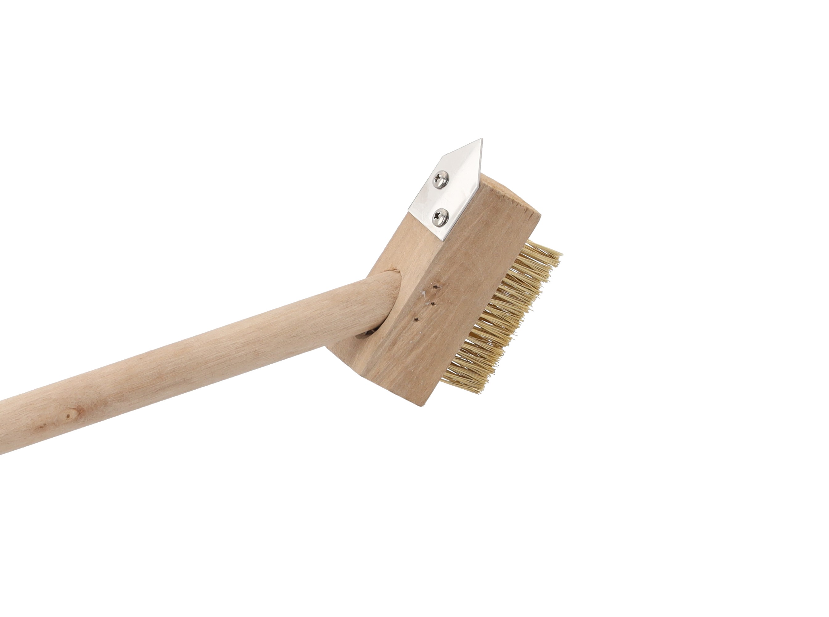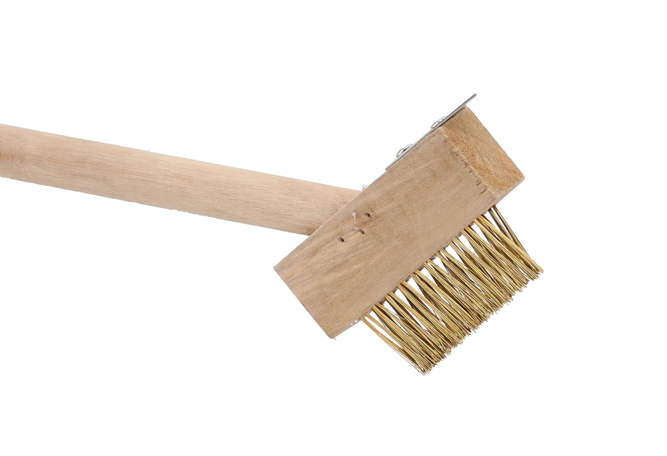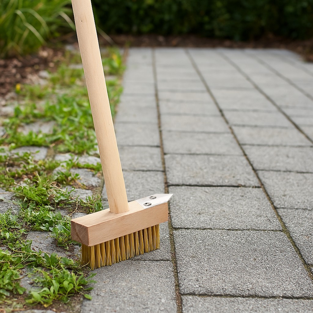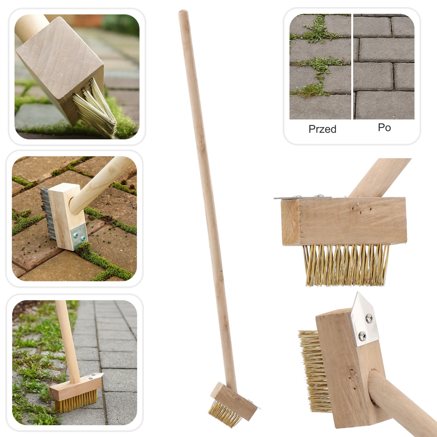 Щетка предназначена для эффективной очистки щелей между брусчаткой, тротуарной плиткой от мха и остатков мелких растений. Благодаря треугольному стальному скребку инструмент позволяет удалять сорняки вместе с корнями из труднодоступных мест между брусчаткой. Щетка имеет деревянную ручку с проволочным наконечником, что обеспечивает долговечность и удобство использования.