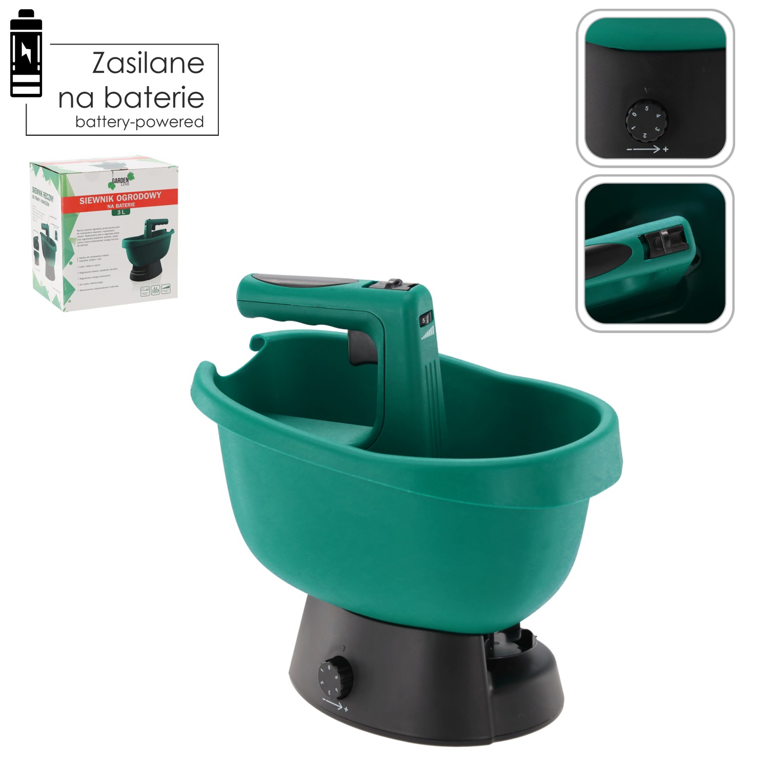 Регулировка дозировки и скорости вращения позволяет адаптировать дальность разбрасывания к вашим потребностям, а объём 3 л — это достаточно места для посевного материала — больше не нужно постоянно пополнять запасы! 🚜✨