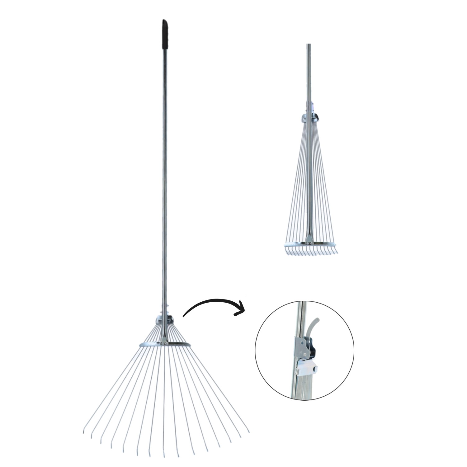 Веник-грабли оснащены регулировкой длины рукоятки и ползунком, благодаря которому легко настроить расстояние между зубцами в соответствии с характером работы в саду. Веник-грабли предназначены для сгребания листьев, скошенной травы и других садовых отходов. Благодаря регулируемой ширине инструмент становится более универсальным и простым в использовании.