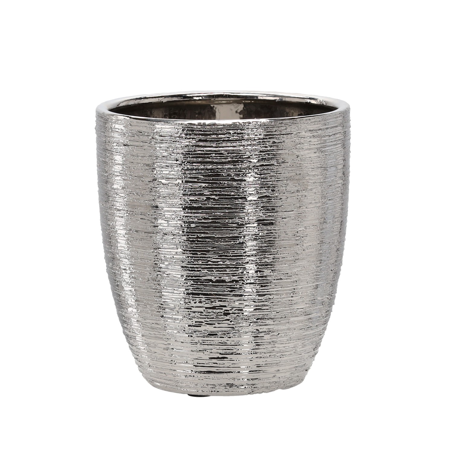 Элегантный керамический чехол серебристого цвета является идеальным дополнением интерьера. Его тонкий блеск позволяет ему прекрасно сочетаться с зелеными растениями и цветочными горшками. Изготовленный из прочной керамики, он устойчив к повреждениям и прост в уходе.