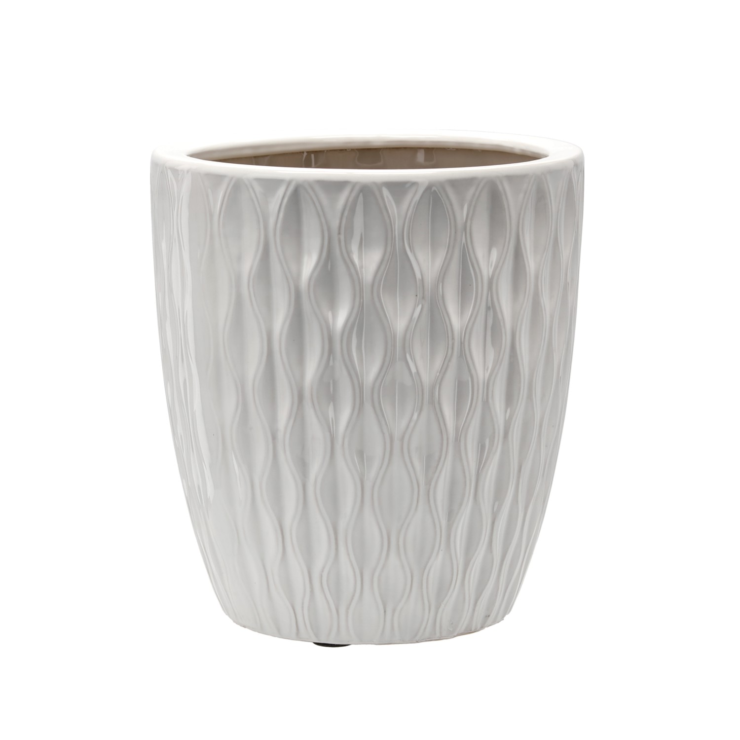 Горшок изготовлен из прочной керамики, что делает его прочным и устойчивым к повреждениям. Он отлично подойдет как для зеленых растений, так и для цветов в горшках, подчеркивая их естественную красоту. Идеально сочетается с интерьерами в различных стилях, от современного до классического.