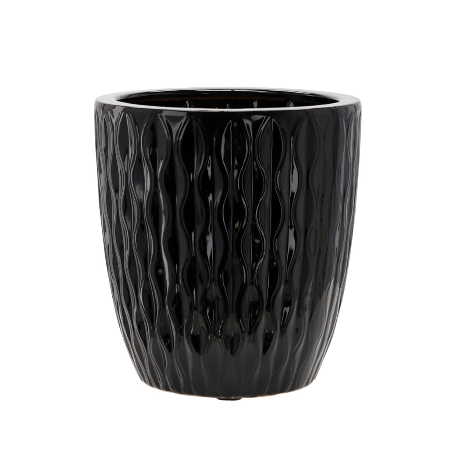 Элегантный керамический кашпо в блестящем черном цвете является прекрасным дополнением интерьера. Его гладкая, блестящая поверхность придает современный характер, а глянцевая отделка красиво отражает свет, добавляя элегантности любому интерьеру.