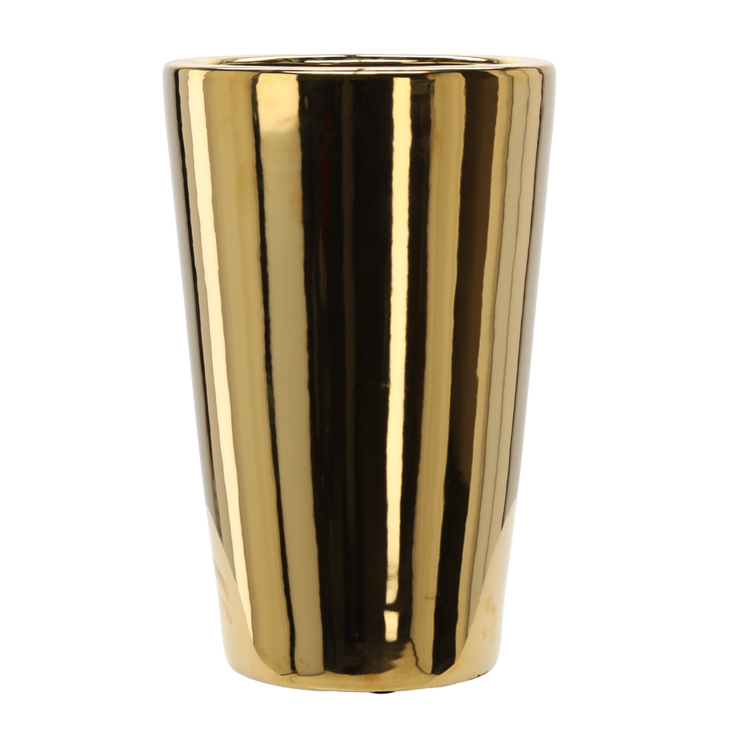 Эксклюзивный керамический кашпо золотого цвета является отличным выбором для ценителей элегантных интерьеров. Его уникальный дизайн подчеркивает современный характер интерьера, а высококачественная керамика обеспечивает долговечность и устойчивость к повреждениям. Прекрасно сочетается с комнатными растениями, придавая интерьеру роскошный вид.