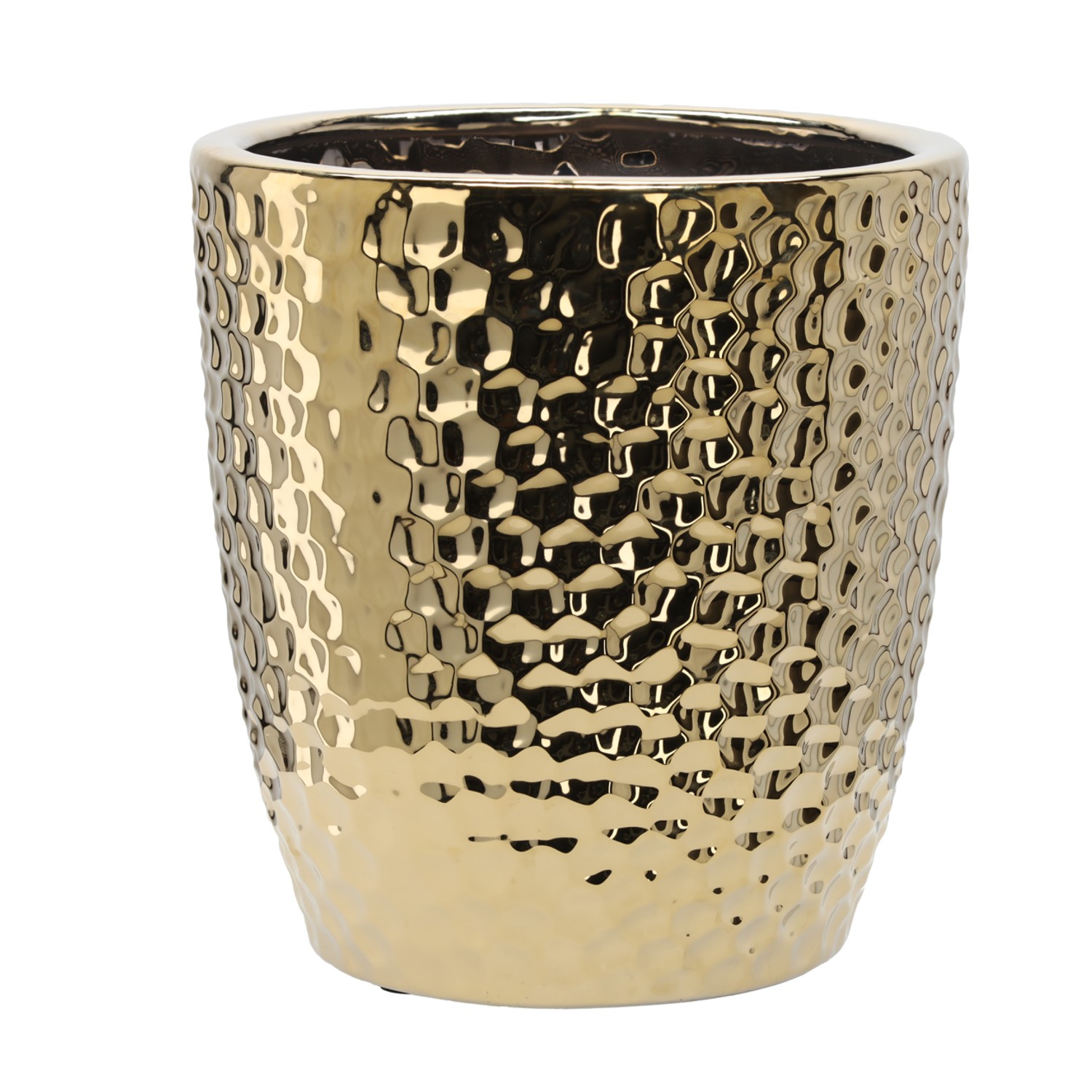 Элегантный керамический чехол золотого цвета с уникальным узором в виде сота является прекрасным дополнением интерьера. Его блестящая поверхность красиво отражает свет, придавая помещению роскошный характер. Структурная текстура в форме шестиугольников подчеркивает современный дизайн, а прочная керамика гарантирует долговечность и устойчивость к повреждениям.