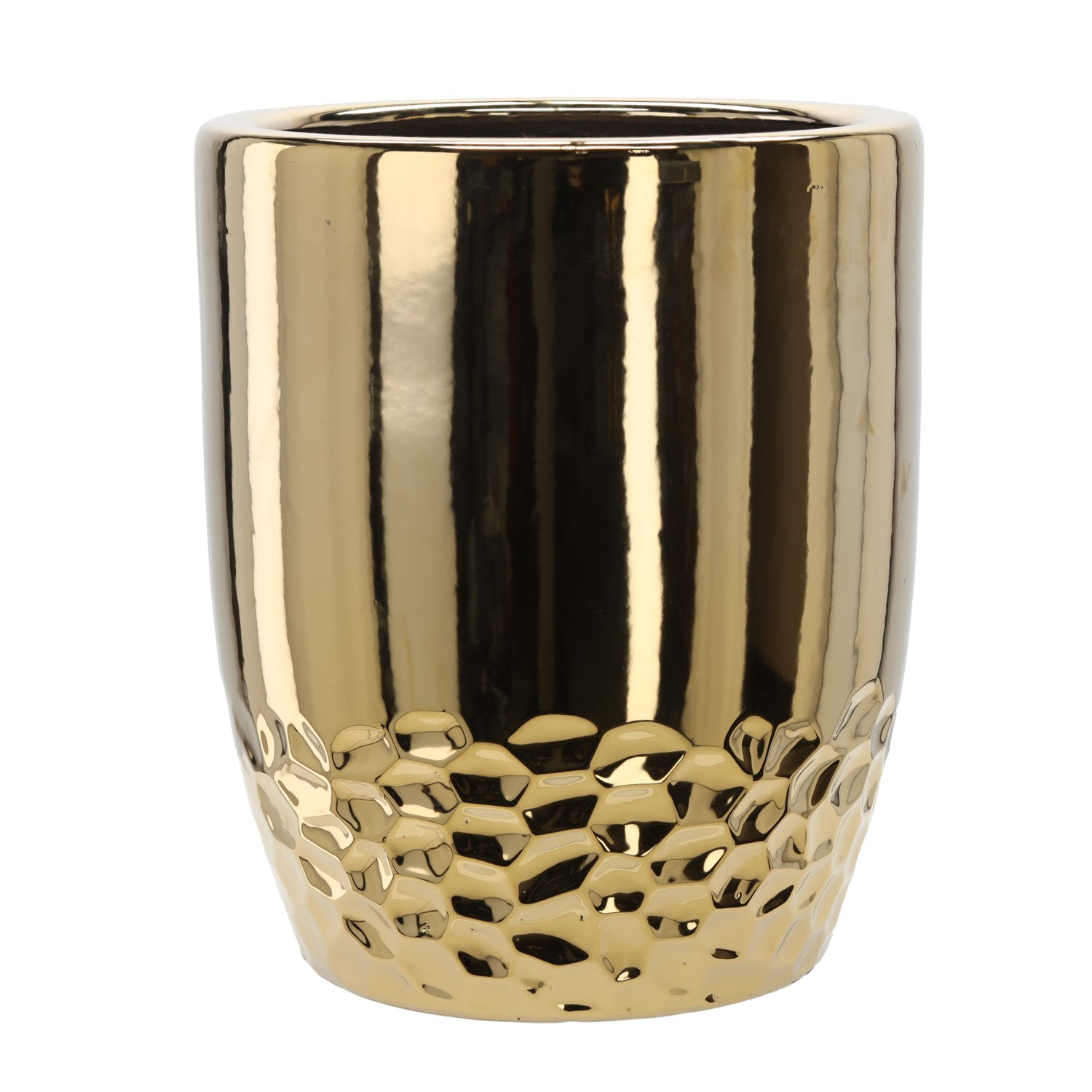 Эксклюзивная керамическая кашпо золотого цвета станет идеальным дополнением к элегантным интерьерам. Её стильный дизайн подчеркивает современный характер интерьера, а прочная керамика гарантирует долговечность и устойчивость к повреждениям. Прекрасно подходит для зеленых растений и комнатных цветов.