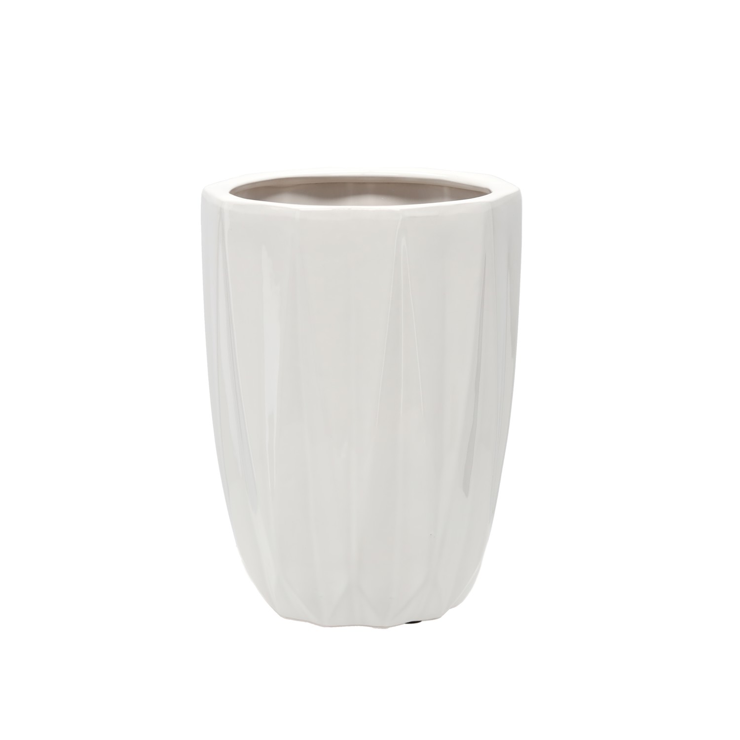 Стильный керамический кашпо белого глянца прекрасно сочетается с интерьерами в различных стилях. Он идеально подходит для зеленых растений и цветов в горшках, а его высокое качество изготовления обеспечивает долговечность и эстетичный вид на длительный период.