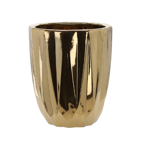 Элегантный керамический чехол блестящего золотого цвета станет прекрасным дополнением интерьера. Его тонко рифленая поверхность придает интересную текстуру, а блестящая отделка красиво отражает свет. Вертикальные рифления подчеркивают его уникальный характер и придают современный вид.