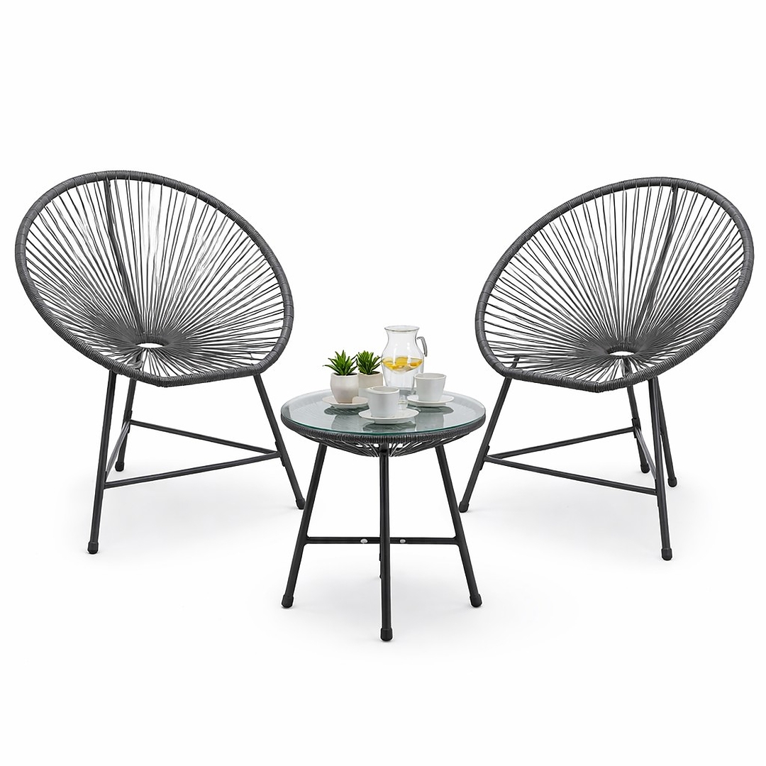 Элегантный, современный и чрезвычайно практичный комплект садовой мебели серого цвета – идеальное решение для тех, кто ценит стиль и комфорт отдыха ☀️Комплект состоит из двух удобных стульев и круглого столика со стеклянной столешницей, создавая идеальное место для утреннего кофе, послеобеденного отдыха или вечерних бесед 🌙 Он отлично подойдет для сада, балкона и террасы, придавая пространству элегантный характер.