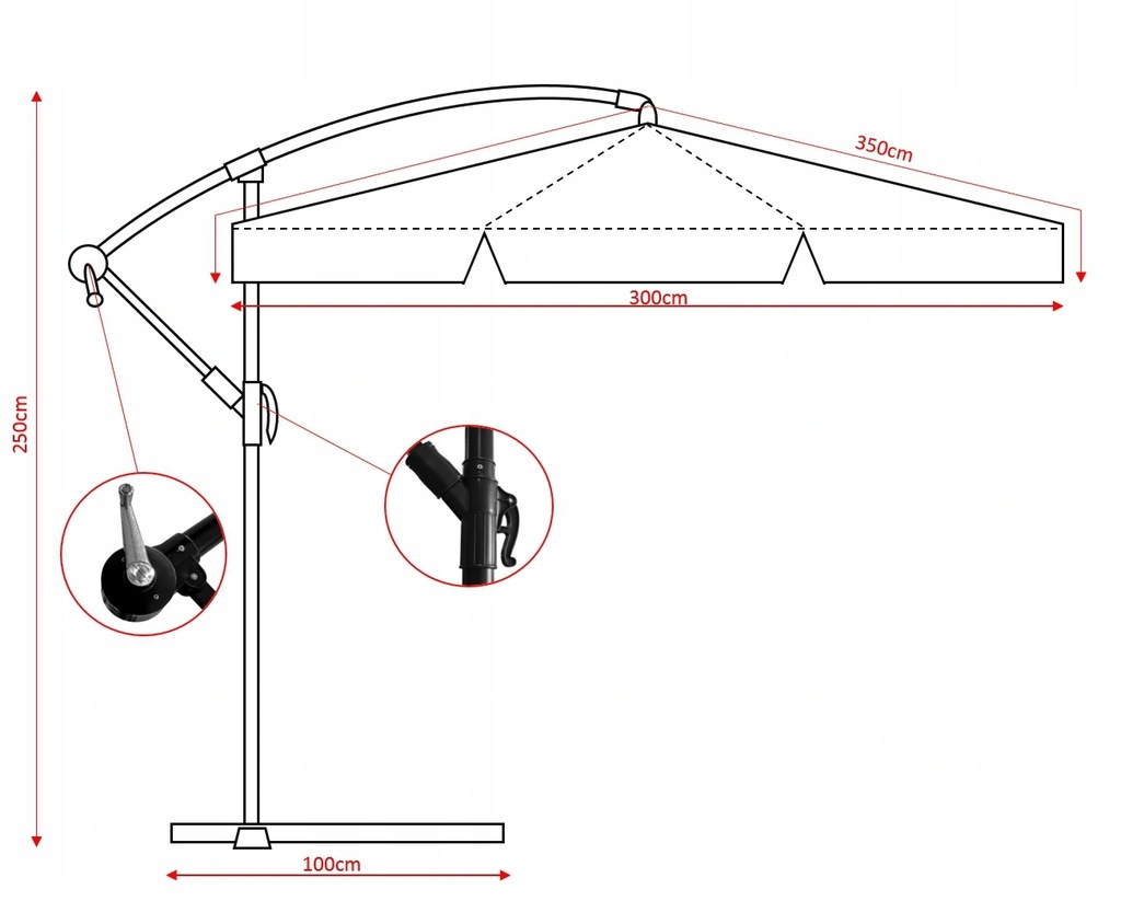 Зонт изготовлен из высококачественного материала. Купол выполнен из водонепроницаемого пластика. Наш продукт оснащен прочной рамой из порошковой окрашенной стали. В куполе имеется специальное вентиляционное отверстие. Кроме того, в комплект входит водонепроницаемый чехол из полиэстера черного цвета.