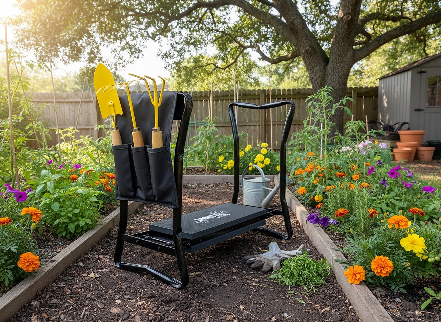 Высококачественныймногофункциональныйсадовый аксессуар изготовлен из высококачественных материалов.Стул, подставка под колени и ящик для инструментовв одном изделии. Имеетмягкую обивкув области колен. Значительно облегчит вам работу в саду. Очень прочная конструкцияидеально подходит для людей, ценящих высокое качество и надежность.