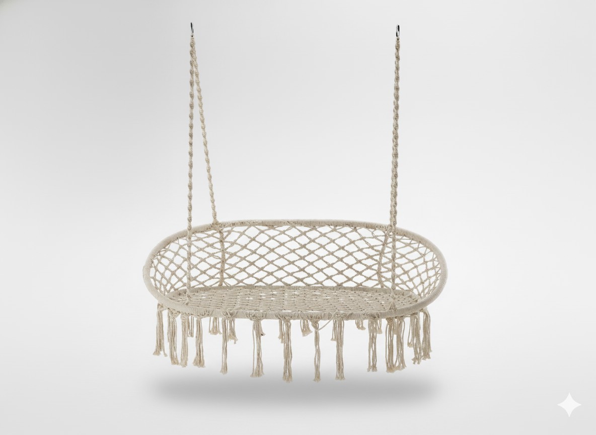 ДВОЙНОЙ ВИСЯЧИЙ КРЕСЛО - ГАМКА - БЕЖЕВЫЙ 🪑