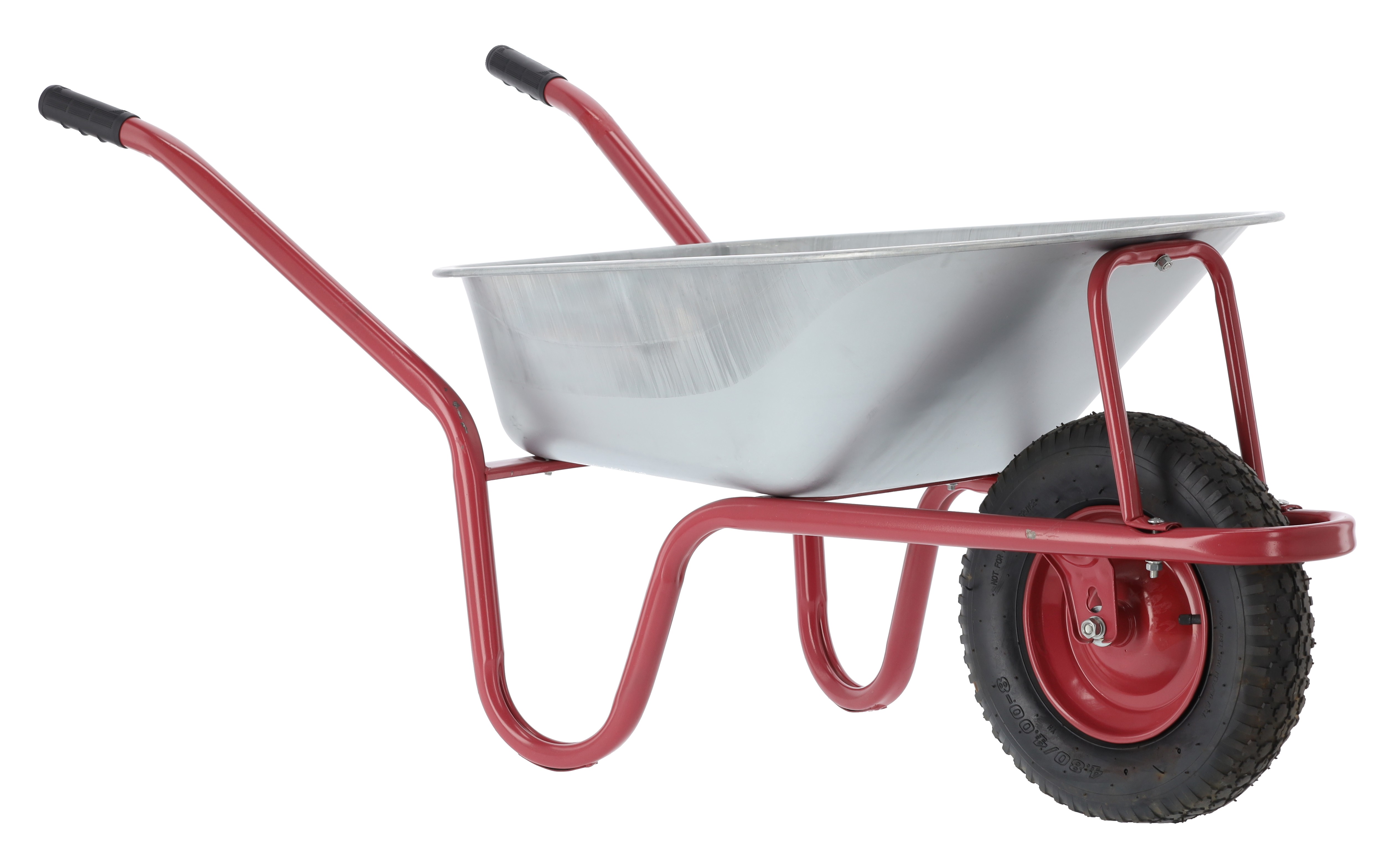 Садовая, строительная двухколесная тачка. Прочная конструкция. Конструкция изготовлена из толстых труб. Надувные колеса, прочная металлическая чаша. Предназначена для работы в саду, на участке, на стройплощадке. Незаменима при транспортировке различных материалов, таких как земля, мусор, камни, мешки с удобрениями, скошенная трава и т. д. Имеет колеса с протектором и эргономичные ручки с выступками, что делает работу безопасной.