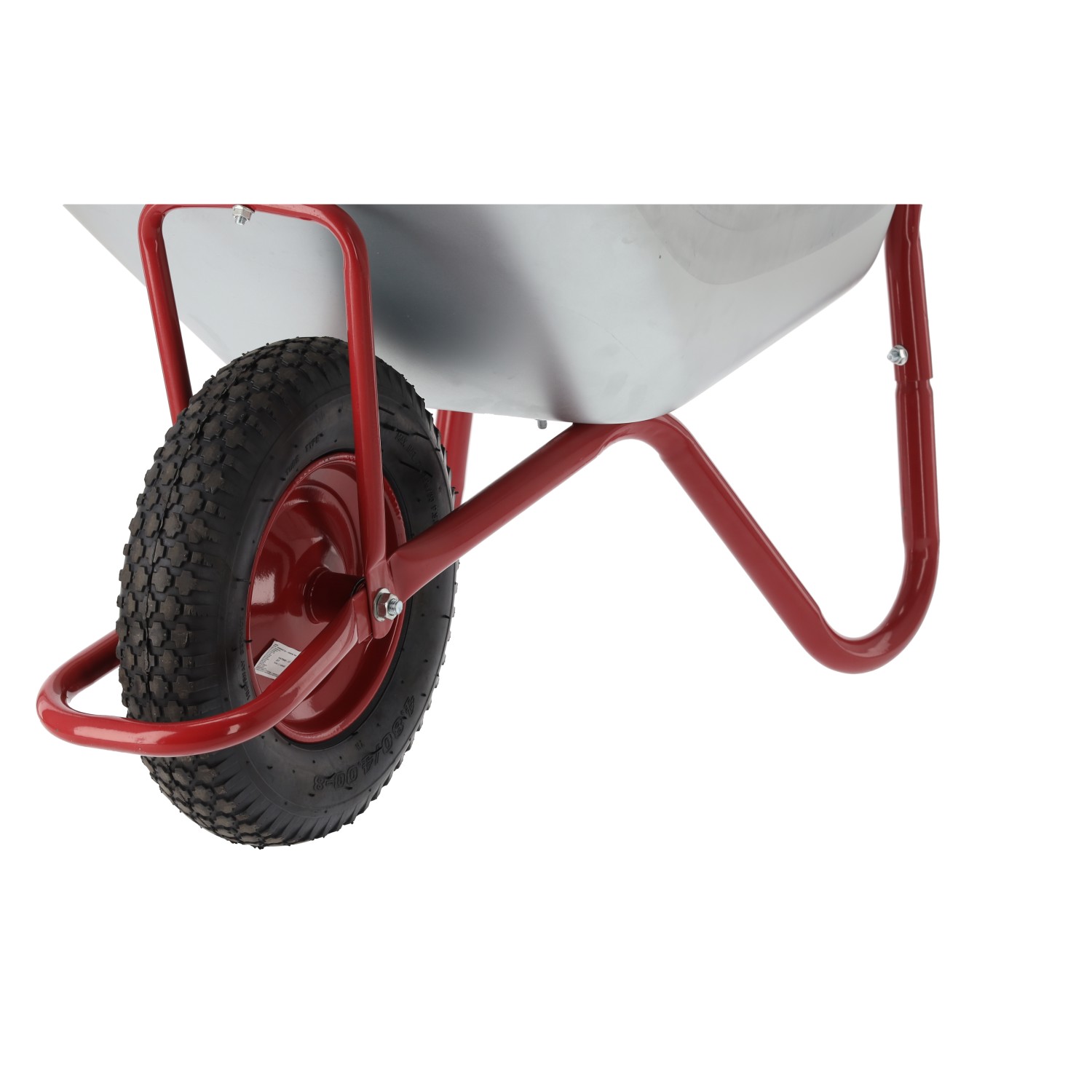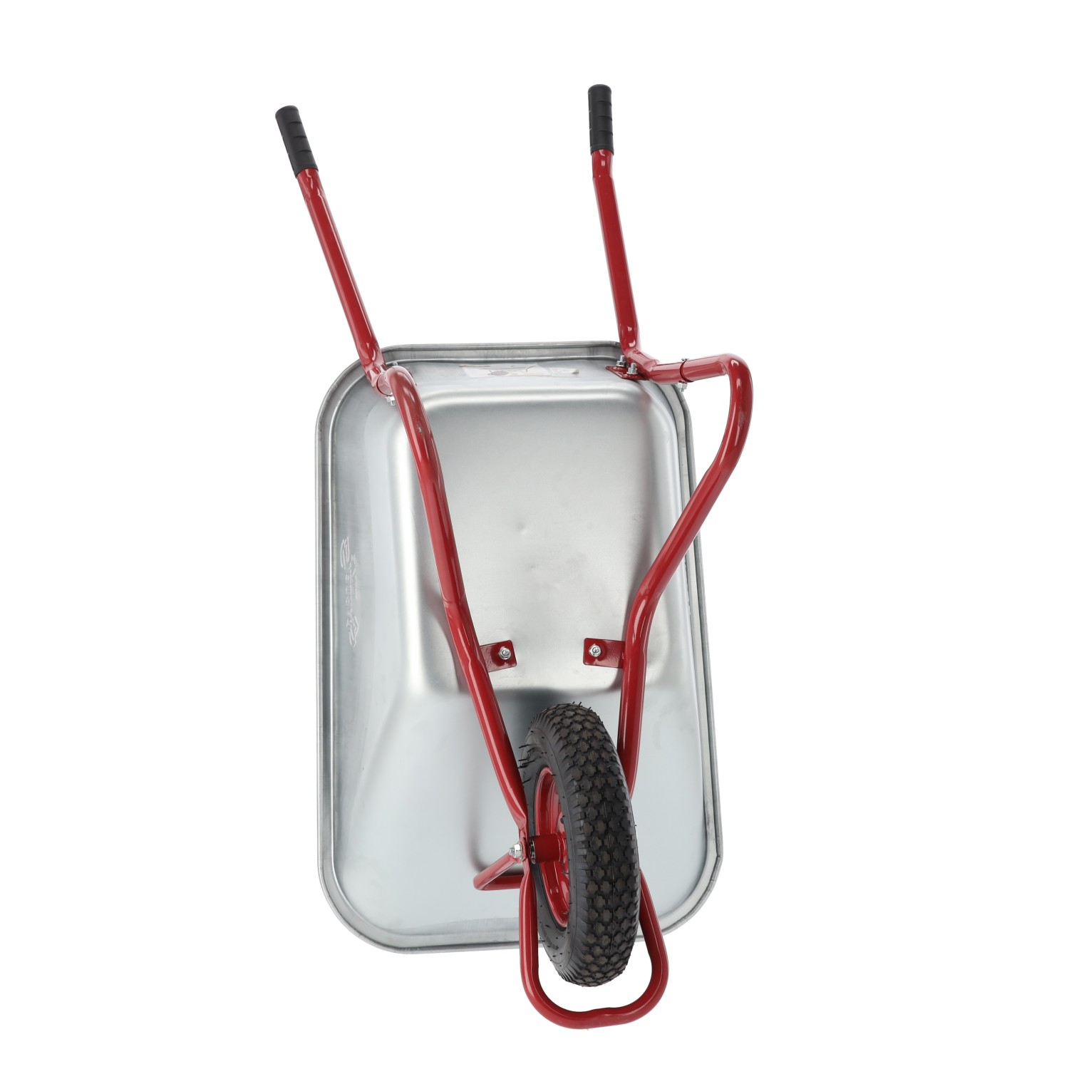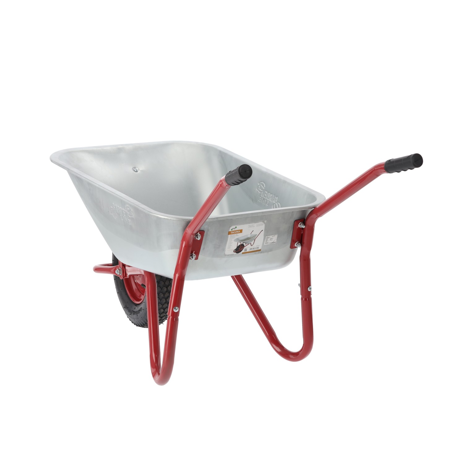 Тачка оснащена оцинкованной стальной чашей, лакированной прочной рамой и резиновыми нескользящими ручками — все для того, чтобы ваша работа была безопасной и удобной. А благодаря складным ручкам и разборным колесам хранение и транспортировка не представляют сложности. 📦