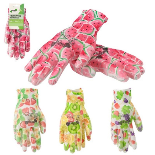 Защитные перчатки вязаные – узор «Фрукты», полиэстер, полиуретановое покрытие, размер 8