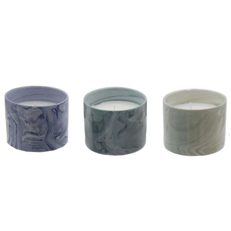 Свеча в элегантном керамическом корпусе доступна в трех мраморных цветах. В состав воска входят эфирные масла, которые источают нежный цитрусовый аромат.Подходит как для использования в помещении, так и на открытом воздухе, однако следует помнить о необходимости размещать свечу на устойчивой поверхности, вдали от легковоспламеняющихся предметов и вне досягаемости детей.Размер: 10x8 см.