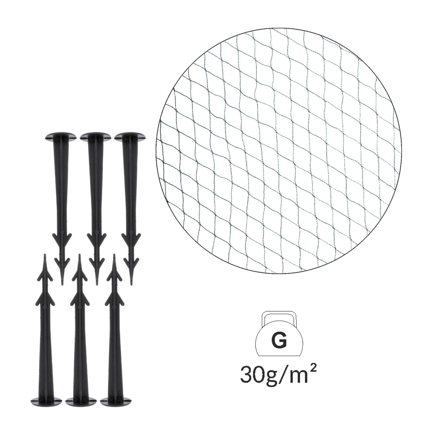 Защитная сетка идеально подходит для защиты водоемов, деревьев и фруктовых кустарников, плантаций или хозяйственных помещений от нежелательных животных, особенно от птиц. Сетка изготовлена из плетеного полиэтилена низкой плотности, благодаря чему она не создает излишней нагрузки на ветви деревьев и кустарников.