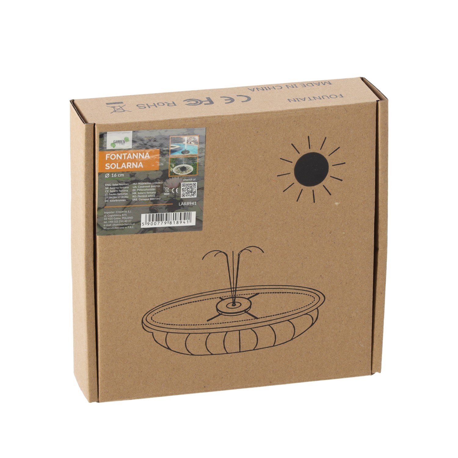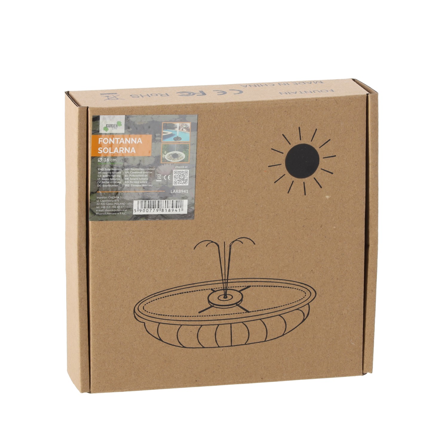 • Размер солнечной батареи: ?16 см x 3 мм