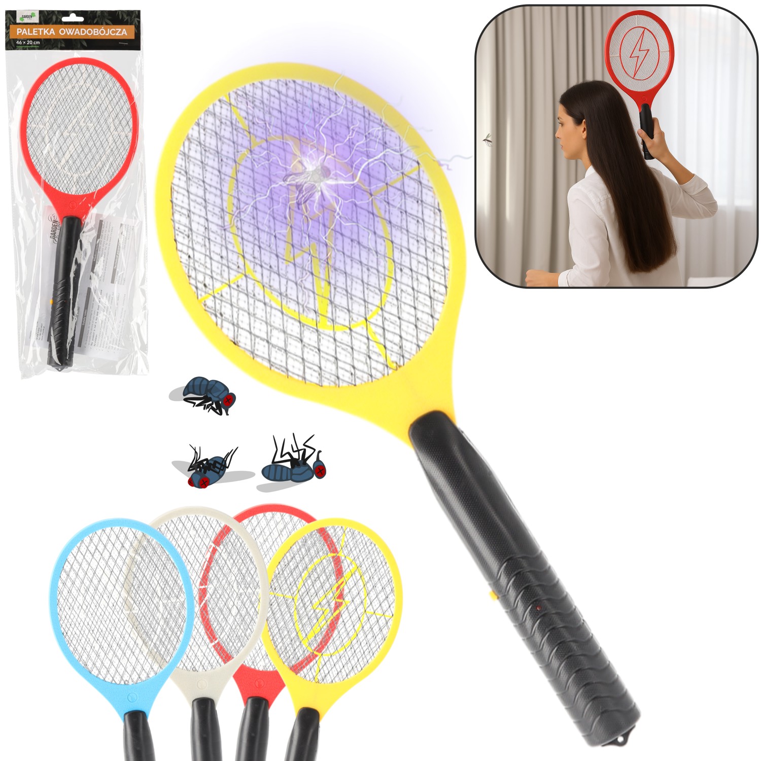 Предмет имеет трехслойную металлическую сетку, в которой циркулируют электрические импульсы. На ручке ракетки находится выключатель и красный светодиод, сигнализирующий о работе электрического тока. По внешнему виду напоминает теннисную ракетку, очень проста в использовании. Не выделяет вредных веществ. Работает от двух батареек AA.