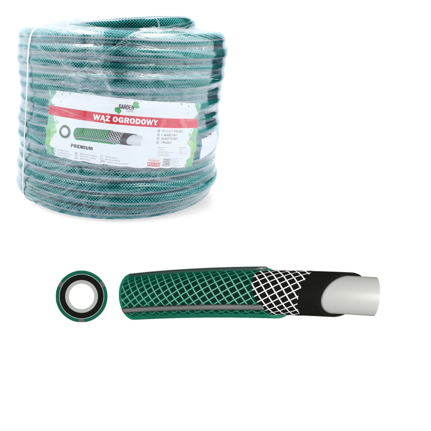 Садовый шланг PREMIUM длиной 30 м и диаметром 3/4" представляет собой высококачественный продукт, произведенный в Польше, предназначенный для интенсивного использования в саду. Шланг имеет 4-слойную конструкцию, изготовленную из эластичного ПВХ на основе суспензионного полихлорвинила, терефталата и других компонентов, что обеспечивает ему высокую устойчивость к повреждениям. Кроме того, шланг усилен текстильной оплеткой, что увеличивает его долговечность и сопротивление разрыву. Продукт предназначен для перекачки воды с рабочим давлением 8 бар (при 20°C), а его разрывное давление составляет более 24 бар (при 20°C). Шланг работает в широком диапазоне температур от -10 °C до +60 °C, что делает его идеальным для круглогодичной эксплуатации.