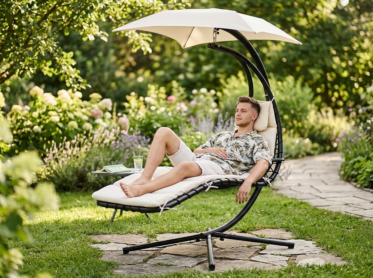 Отдохните в саду, как никогда раньше! Садовое кресло-качалка в элегантном бежевом цвете — идеальный способ расслабиться в тени под ритм нежных покачиваний. 🧘♂️