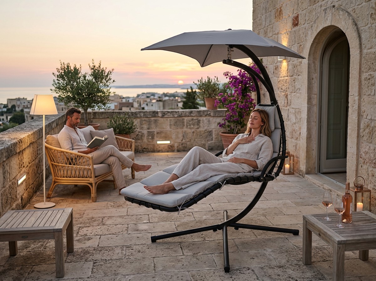 Это больше, чем просто садовая мебель — это Ваша личная зона отдыха. Благодаря удобному сиденью и защитному балдахину Вы сможете наслаждаться спокойствием в любое время дня, независимо от погоды 😌