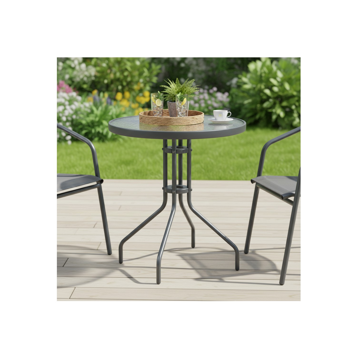 Элегантный и функциональный круглый садовый столик — идеальный выбор для сада, террасы или балкона. Современное сочетание металлической рамы и стеклянной столешницы придает ему легкость, одновременно обеспечивая прочность и устойчивость. Он прекрасно подойдет для утреннего кофе ☕, послеобеденного отдыха или встреч в кругу близких 🌞