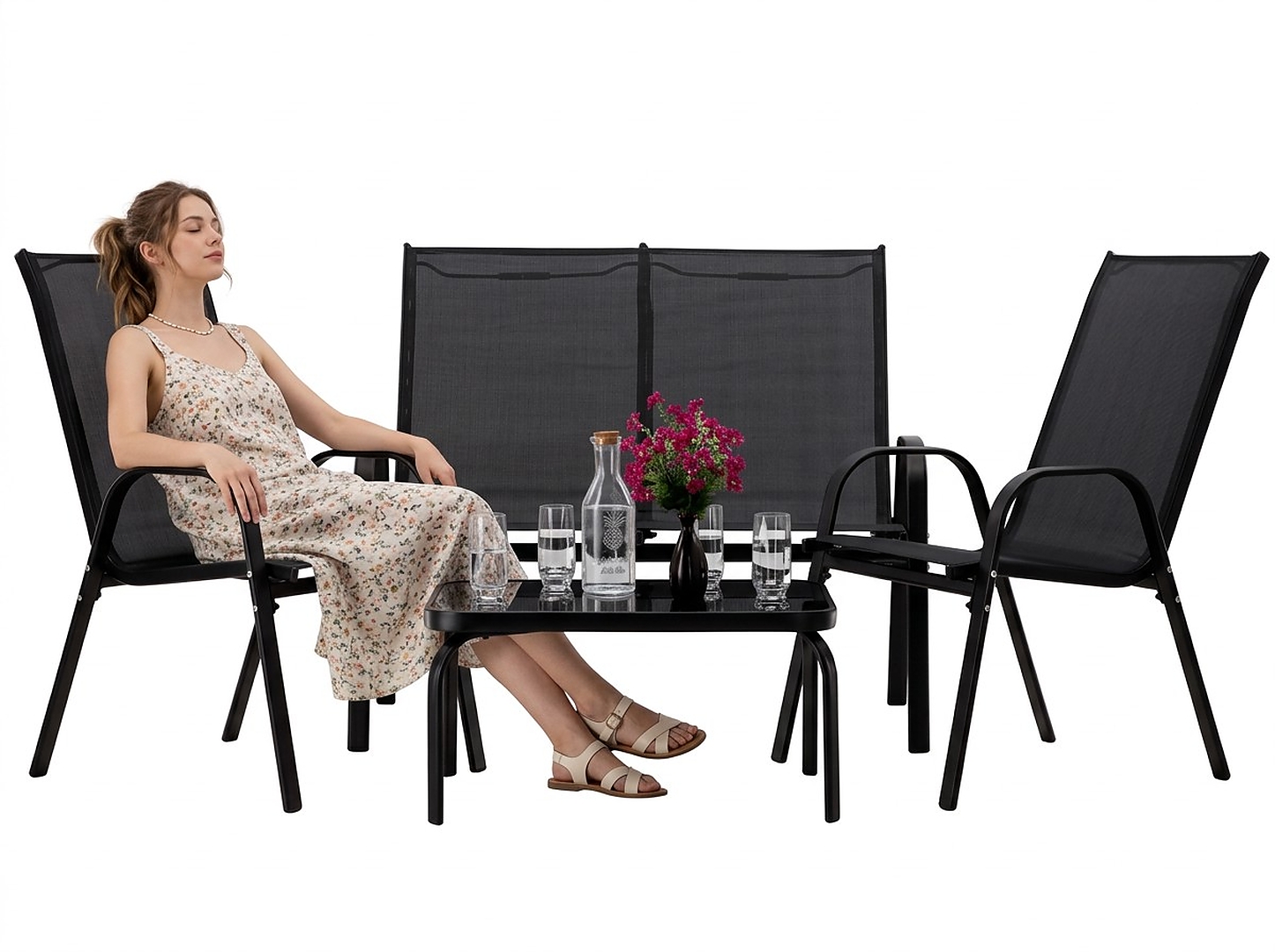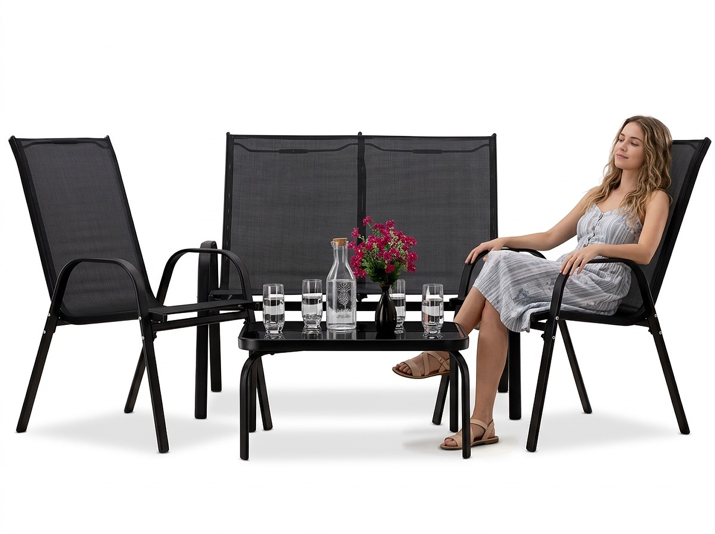 Стулья размером 64x55x81 см отличаются современным дизайном и изготовлены из материалов высочайшего качества. Стальная рама с порошковой окраской в серо-чёрном цвете гарантирует исключительную долговечность и устойчивость к погодным условиям. Сиденья и спинки стульев обтянутыматериалом textilene 2x1, который не только прочен, но и обеспечивает отличную циркуляцию воздуха, что повышает комфорт использования в теплые дни.