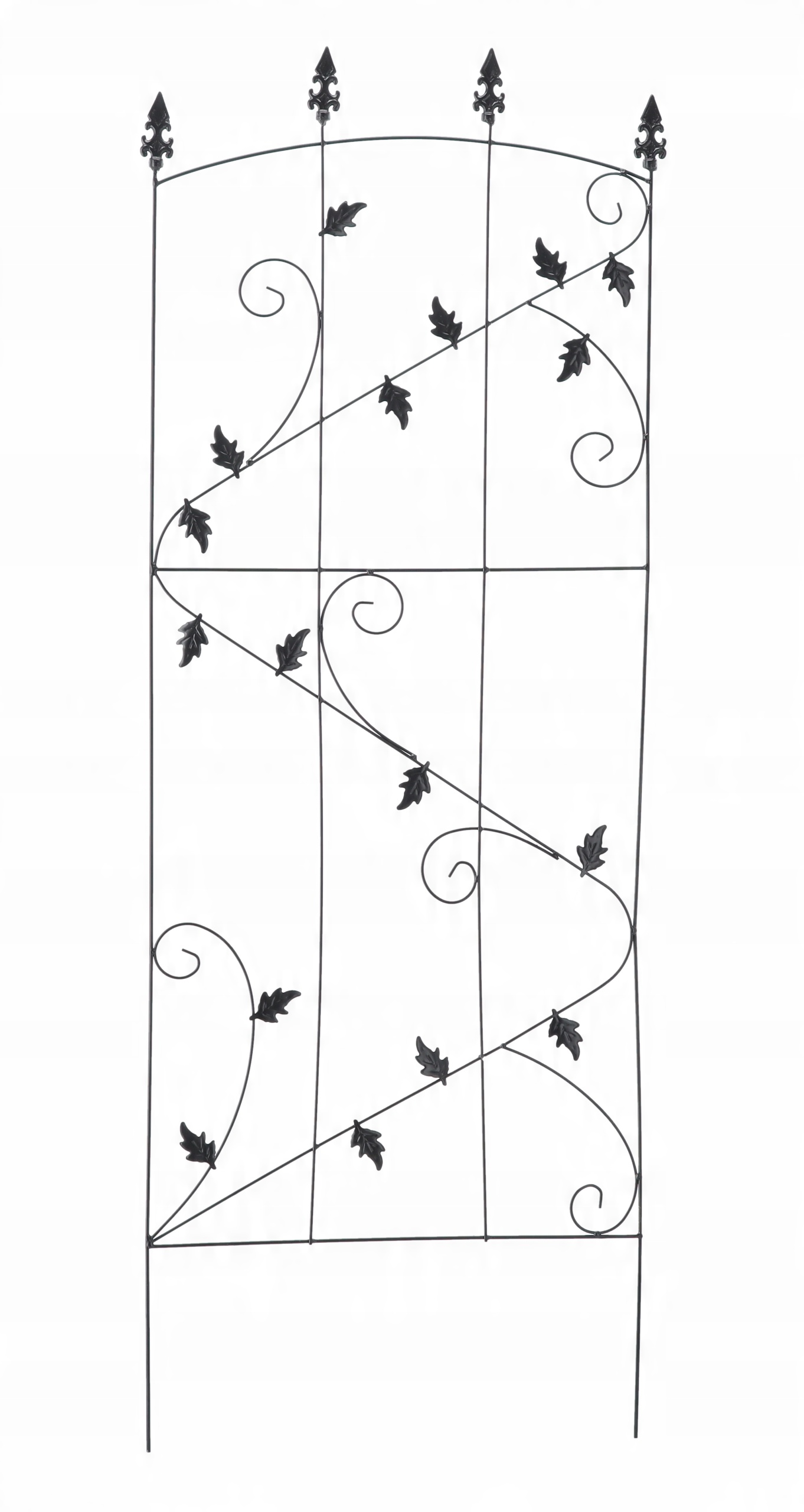 Подходит для выращивания вьющихся растений, которые требуют надлежащей опоры. Это способствует более здоровому и быстрому росту этих растений. Позволяет формировать цветущие и зеленые стебли вдоль дорожек, деревьев и живых изгородей. Опору также можно использовать в саду, на клумбах, на балконе или террасе. Благодаря ей мы сможем упорядочить свой сад, выделить растения и защитить их от сильного ветра. Изготовлена из высококачественного металла черного цвета. Прочная и стабильная конструкция. Подпорка выполняет декоративную функцию, имеет эффектный дизайн. Идеально сочетается с цветами. Ее можно установить в грунте, а также в горшках. Материал: металлШирина: 60 смВысота: 167 смЦвет: черный
